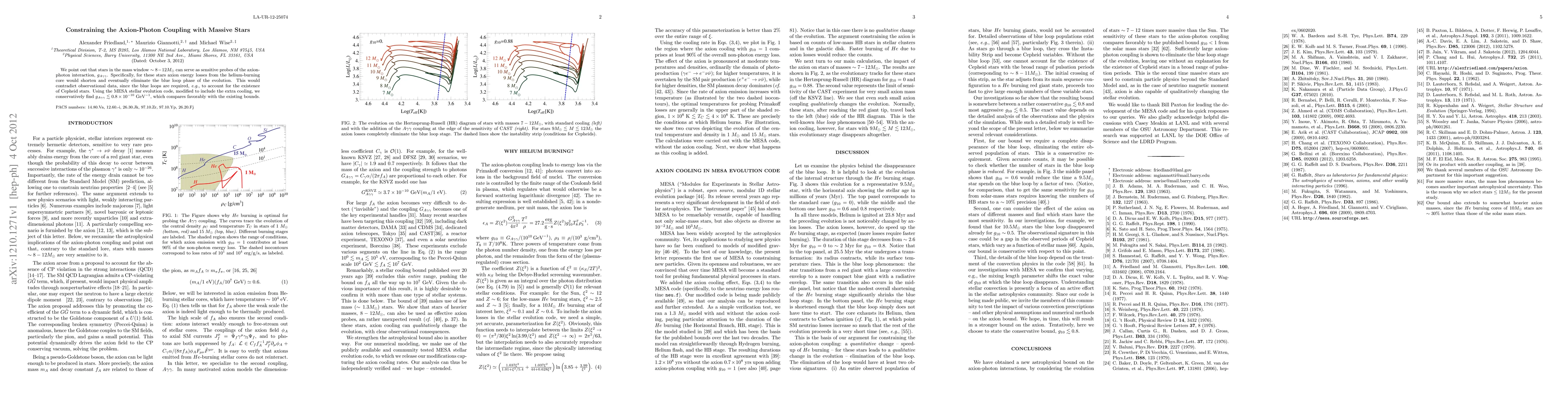 We point out that stars in the mass window ~ 8-12 Msun can serve as sensitive probes of the axion-photon interaction, g_{A\gamma\gamma}. Specifically, for these stars axion energy losses from the helium-burning core would shorten and eventually eliminate the blue loop phase of the evolution. This would contradict observational data, since the blue loops are required, e.g., to account for the existence of Cepheid stars. Using the MESA stellar evolution code, modified to include the extra cooling, we conservatively find g_{A\gamma\gamma} <~ 0.8 * 10^{-10} GeV^{-1}, which compares favorably with the existing bounds.
