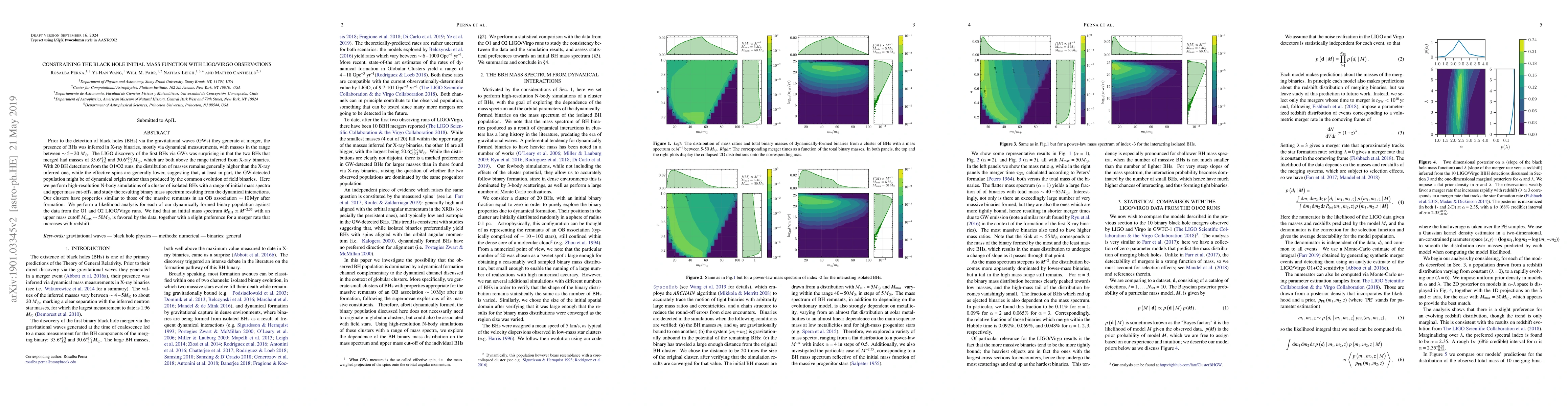 Prior to the detection of black holes (BHs) via the gravitational waves (GWs) they generate at merger, the presence of BHs was inferred in X-ray binaries, mostly via dynamical measurements, with masses in the range between $\sim 5-20~M_\odot$. The LIGO discovery of the first BHs via GWs was surprising in that the two BHs that merged had masses of $35.6^{+4.8}_{-3.0}$ and $30.6^{+3.0}_{-4.4}\,M_\odot$, which are both above the range inferred from X-ray binaries. With 20 BH detections from the O1/O2 runs, the distribution of masses remains generally higher than the X-ray inferred one, while the effective spins are generally lower, suggesting that, at least in part, the GW-detected population might be of dynamical origin rather than produced by the common evolution of field binaries. Here we perform high-resolution N-body simulations of a cluster of isolated BHs with a range of initial mass spectra and upper mass cut-offs, and study the resulting binary mass spectrum resulting from the dynamical interactions. Our clusters have properties similar to those of the massive remnants in an OB association $\sim 10 \, \mathrm{Myr}$ after formation. We perform a likelihood analysis for each of our dynamically-formed binary population against the data from the O1 and O2 LIGO/Virgo runs. We find that an initial mass spectrum $M_{\rm BH}\propto M^{-2.35}$ with an upper mass cutoff $M_{\rm max}\sim 50M_\odot$ is favored by the data, together with a slight preference for a merger rate that increases with redshift.