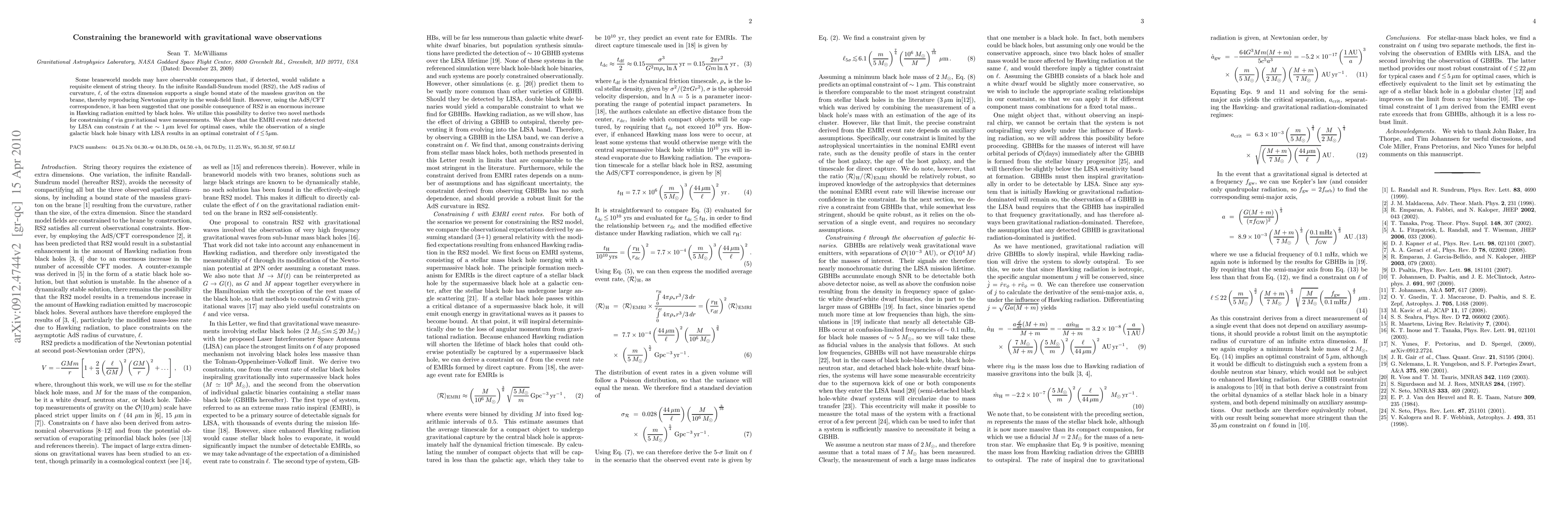 Some braneworld models may have observable consequences that, if detected, would validate a requisite element of string theory. In the infinite Randall-Sundrum model (RS2), the AdS radius of curvature, L, of the extra dimension supports a single bound state of the massless graviton on the brane, thereby reproducing Newtonian gravity in the weak-field limit. However, using the AdS/CFT correspondence, it has been suggested that one possible consequence of RS2 is an enormous increase in Hawking radiation emitted by black holes. We utilize this possibility to derive two novel methods for constraining L via gravitational wave measurements. We show that the EMRI event rate detected by LISA can constrain L at the ~1 micron level for optimal cases, while the observation of a single galactic black hole binary with LISA results in an optimal constraint of L <= 5 microns.