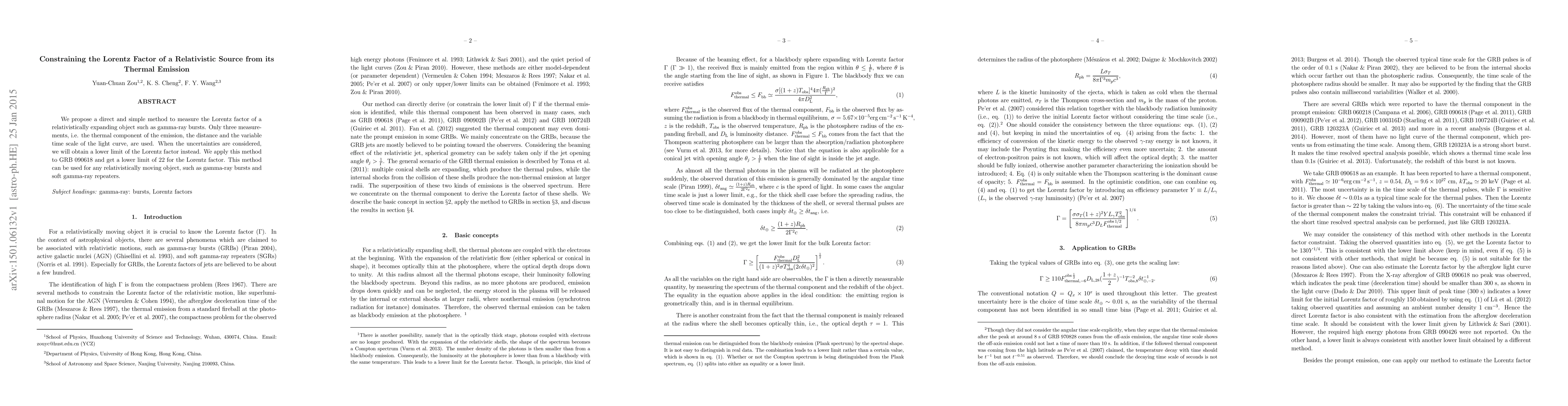 This paper proposes a model-independent method to constrain the Lorentz factor of relativistically expanding objects, like gamma-ray bursts, using thermal emission, distance, and light curve time scales. Applied to GRB 090618, the method yields a lower limit of the Lorentz factor of 22.