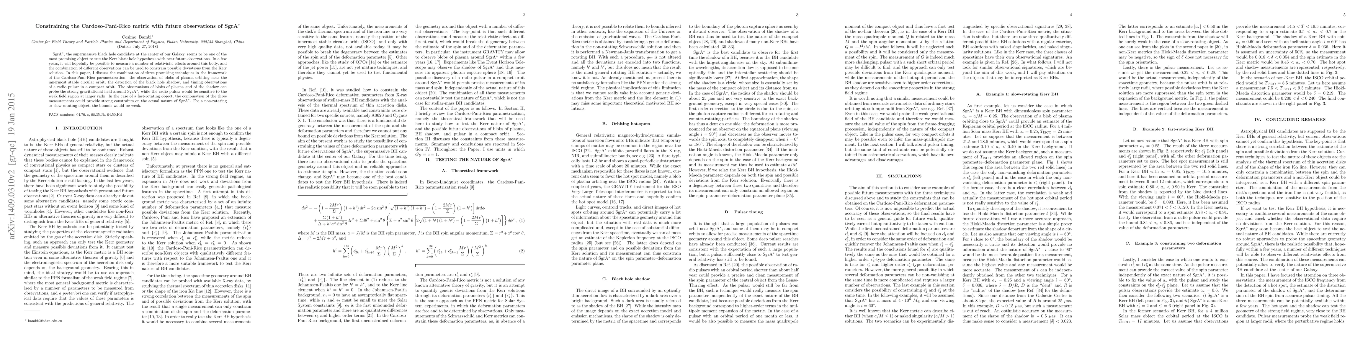 This paper explores how future observations of SgrA$^*$, the supermassive black hole at the Milky Way's center, can test the Kerr black hole hypothesis using three techniques: plasma blobs, black hole shadow detection, and radio pulsar timing. These methods aim to constrain deviations from the Kerr solution, especially for fast-rotating black holes.