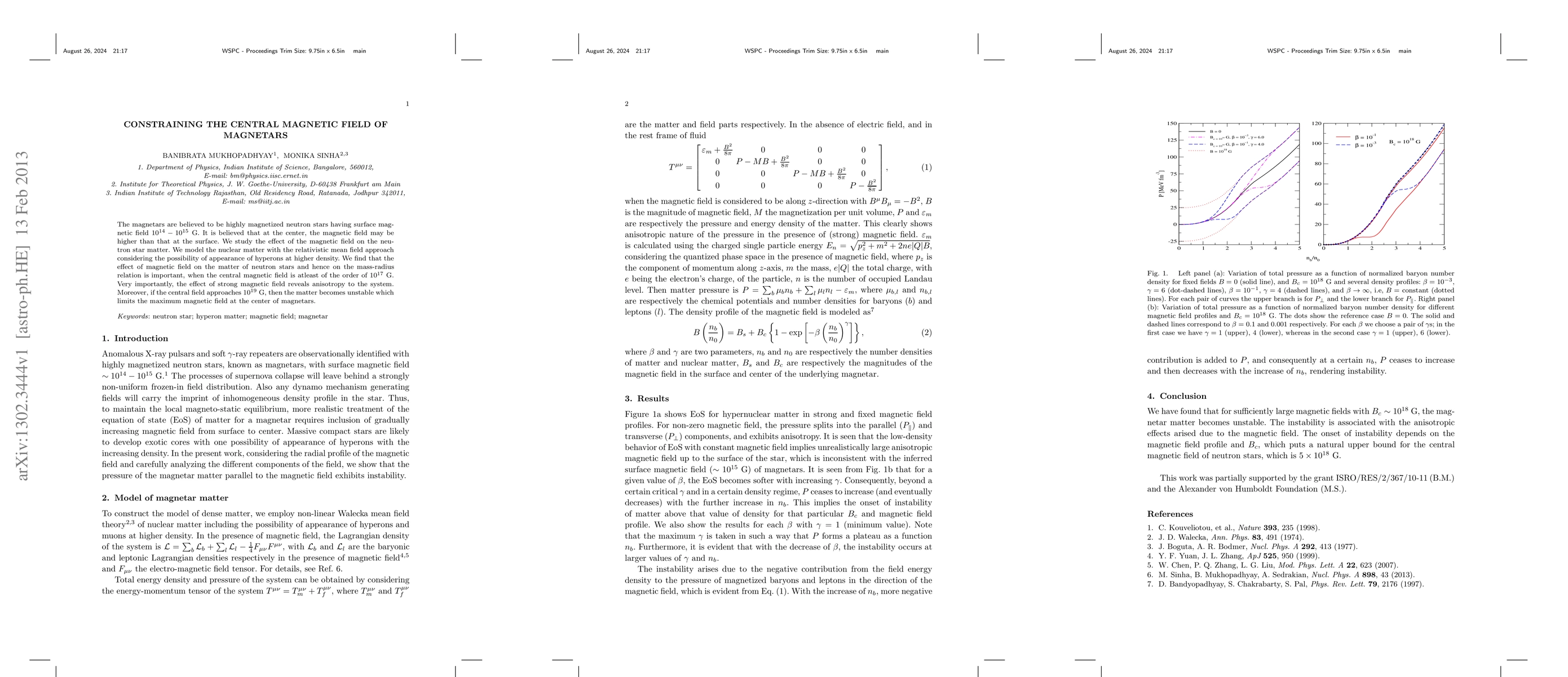 This paper investigates the impact of central magnetic fields on the properties of magnetars, finding that fields of at least 10^17 G induce significant anisotropy in neutron star matter and affect the mass-radius relation. It concludes that central fields approaching 10^19 G render the matter unstable, thereby constraining the maximum central magnetic field.