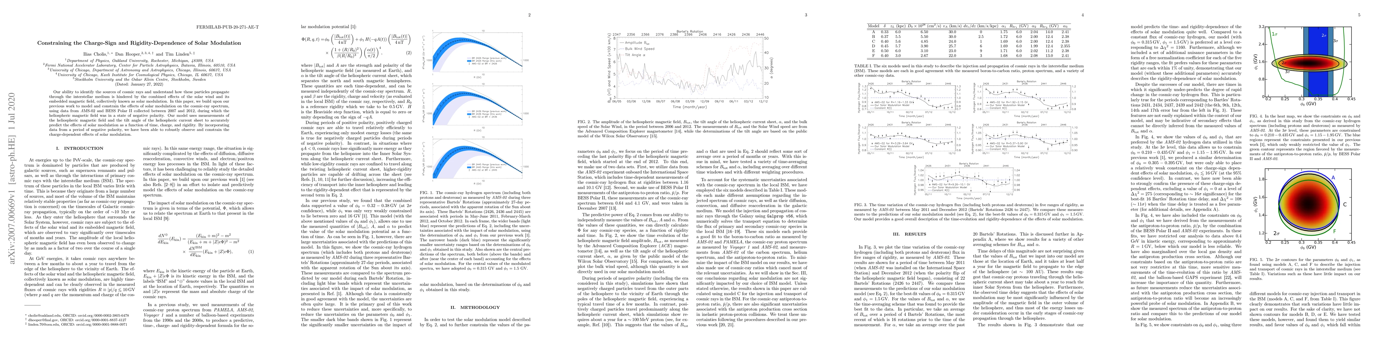 This paper models and constrains solar modulation's effects on cosmic rays using AMS-02 and BESS data from 2007-2012. It focuses on charge-dependent and rigidity-related influences during a period of negative heliospheric magnetic polarity.