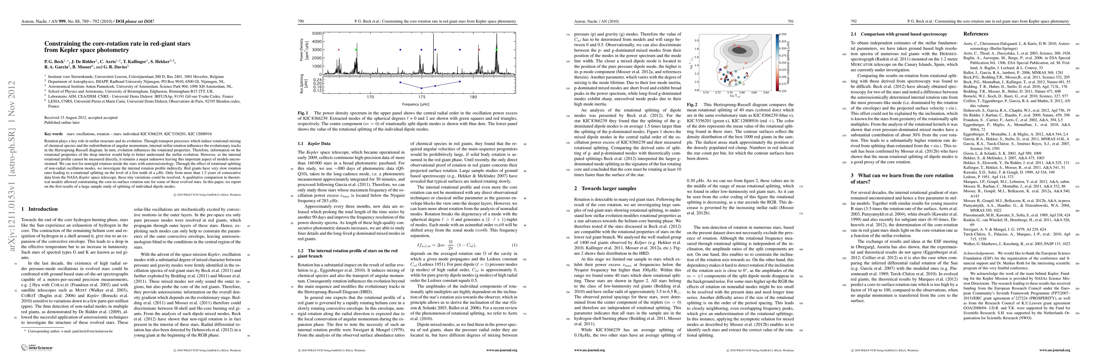 This paper uses Kepler space telescope data to indirectly measure the core-rotation rate in red-giant stars through the rotational splitting of non-radial oscillation modes, providing new insights into stellar evolution models. The study reports initial results from a large sample, constraining the core-to-surface rotation rate for some evolved stars.
