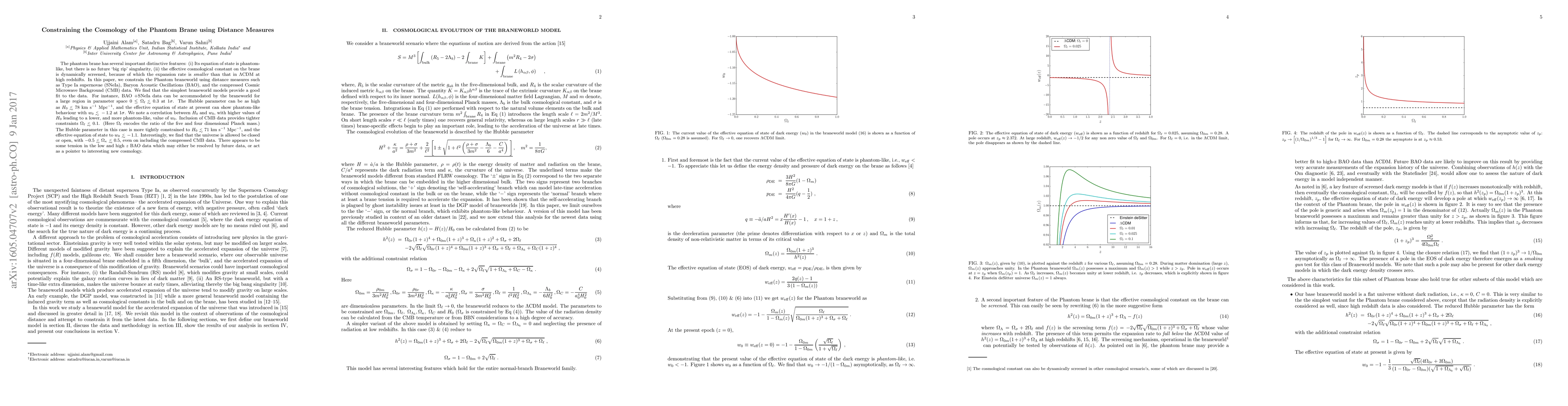 This research constrains the cosmological model of a phantom brane using Type Ia supernovae, Baryon Acoustic Oscillations, and Cosmic Microwave Background data. It finds that braneworld models fit the data well, allowing for a high Hubble parameter and a phantom-like equation of state. The study also suggests the universe could be geometrically closed or open, noting a potential tension in BAO data at low and high redshifts.