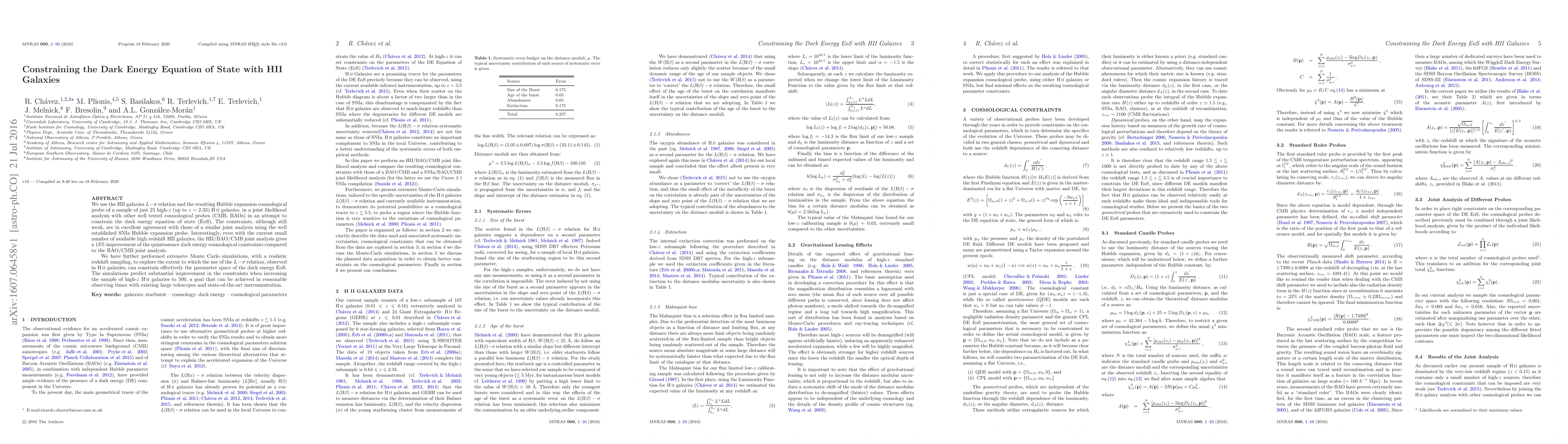 This paper uses HII galaxies' $L - \sigma$ relation and high-$z$ Hubble expansion data to constrain the dark energy equation of state, achieving a 13% improvement over CMB and BAO joint analysis. Simulations suggest significant constraint improvements with a larger sample of HII galaxies, achievable with current technology.