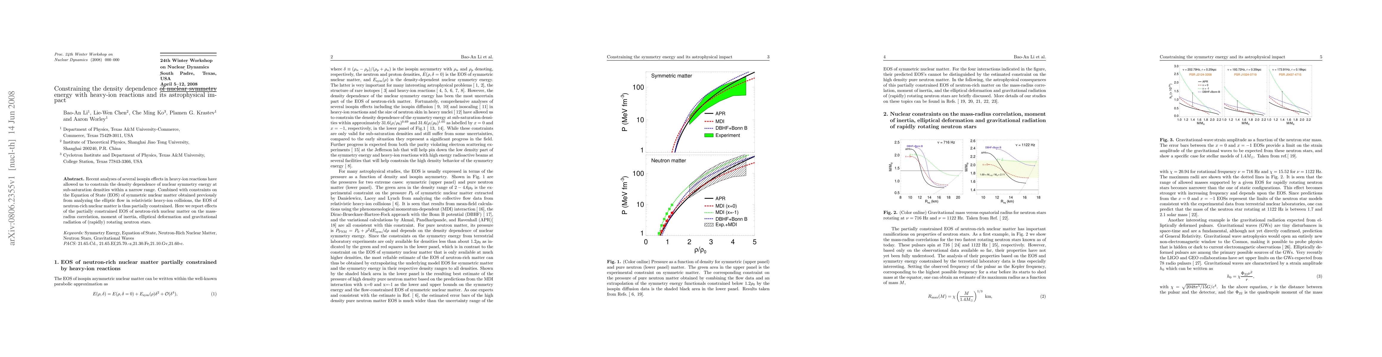 This paper constrains the density dependence of nuclear symmetry energy using heavy-ion reactions and analyzes its impact on neutron stars, including mass-radius correlations, moment of inertia, deformation, and gravitational radiation. The findings provide insights into the properties of neutron-rich nuclear matter and its astrophysical implications.