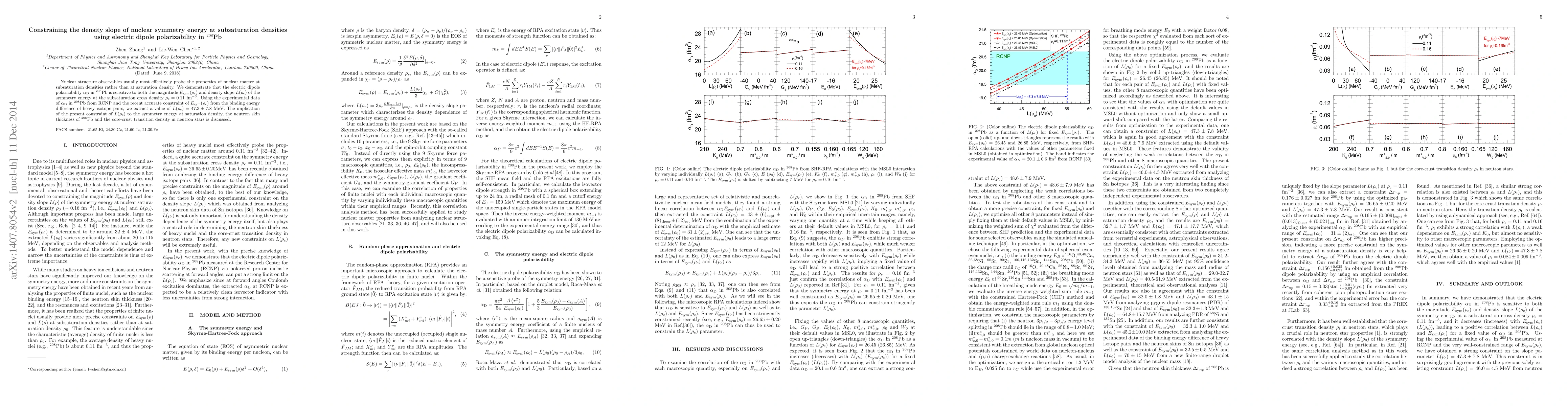 This paper investigates the electric dipole polarizability in $^{208}$Pb to constrain the density slope $L(\rho_{\text{c}})$ of nuclear symmetry energy at subsaturation densities. The study finds $L(\rho_{\text{c}}) = 47.3 \pm 7.8$ MeV, providing implications for symmetry energy at saturation density, neutron skin thickness in $^{208}$Pb, and core-crust transition in neutron stars.