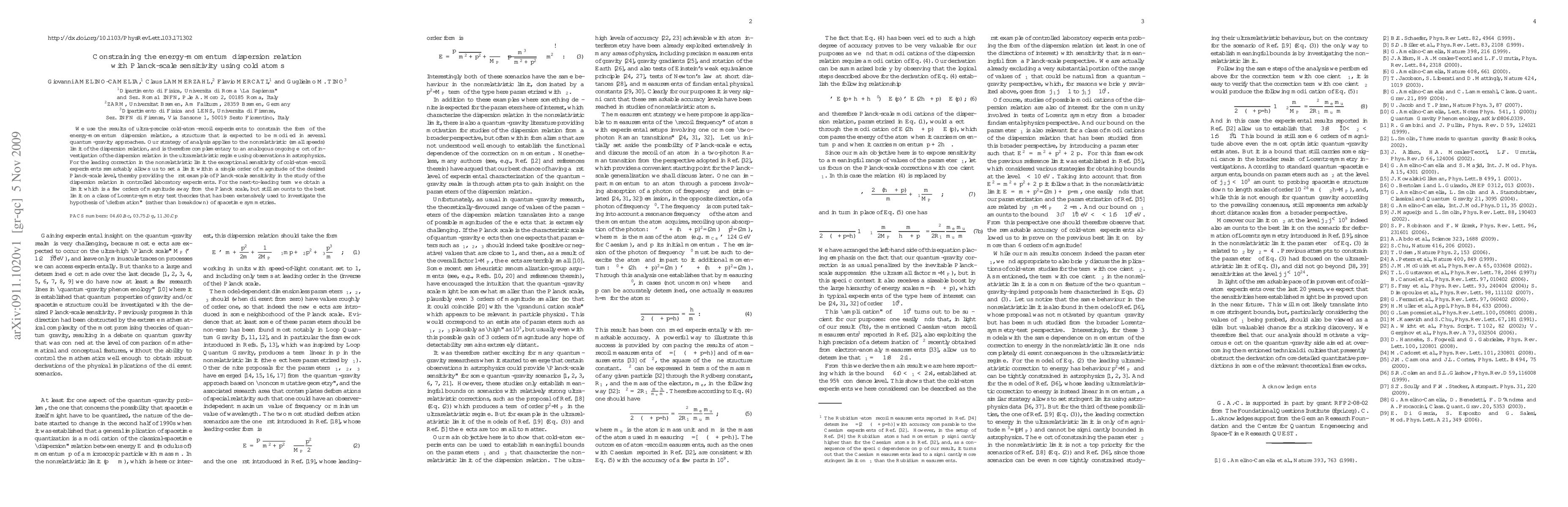 Researchers used ultra-precise cold-atom experiments to constrain a key concept in quantum gravity, setting limits on its energy-momentum dispersion relation that approach the Planck scale. The study provides new insights into spacetime symmetries.