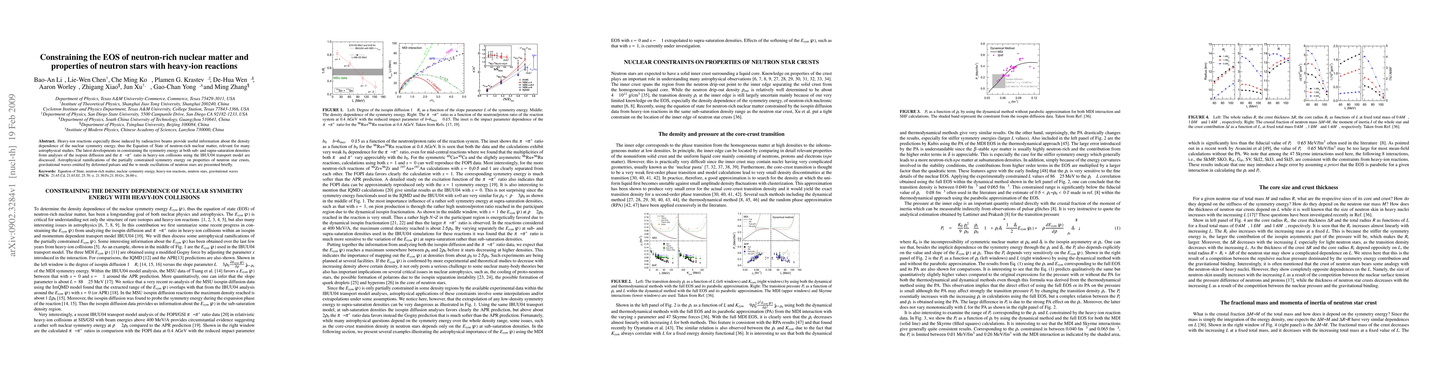 Heavy-ion reactions especially those induced by radioactive beams provide useful information about the density dependence of the nuclear symmetry energy, thus the Equation of State of neutron-rich nuclear matter, relevant for many astrophysical studies. The latest developments in constraining the symmetry energy at both sub- and supra-saturation densities from analyses of the isopsin diffusion and the $\pi^-/\pi^+$ ratio in heavy-ion collisions using the IBUU04 transport model are discussed. Astrophysical ramifications of the partially constrained symmetry energy on properties of neutron star crusts, gravitational waves emitted by deformed pulsars and the w-mode oscillations of neutron stars are presented briefly.