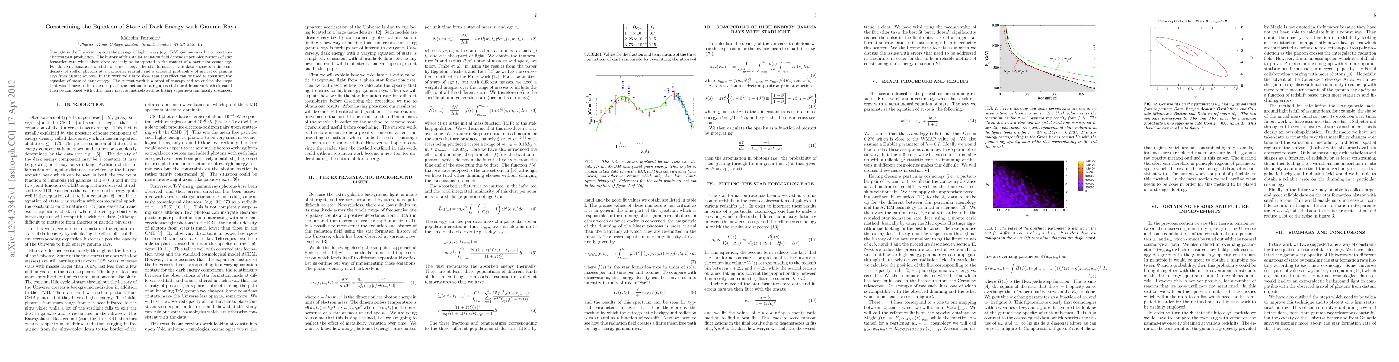 Starlight in the Universe impedes the passage of high energy (e.g. TeV) gamma rays due to positron-electron pair production. The history of this stellar radiation field depends upon observations of star formation rate which themselves can only be interpreted in the context of a particular cosmology. For different equations of state of dark energy, the star formation rate data suggests a different density of stellar photons at a particular redshift and a different probability of arrival of gamma rays from distant sources. In this work we aim to show that this effect can be used to constrain the equation of state of dark energy. The current work is a proof of concept and we outline the steps that would have to be taken to place the method in a rigorous statistical framework which could then be combined with other more mature methods such as fitting supernova luminosity distances.