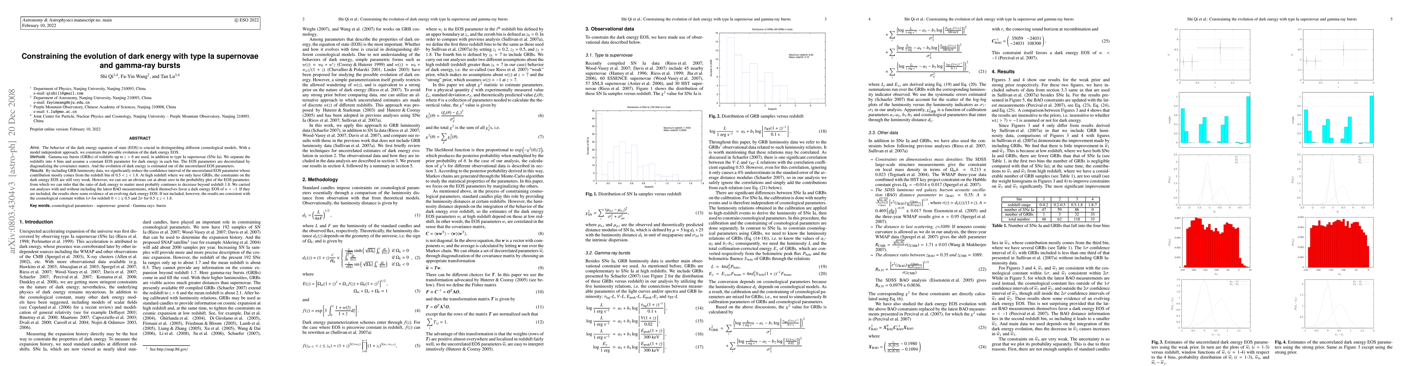 approach, we constrain the possible evolution of the dark energy EOS. Gamma-ray