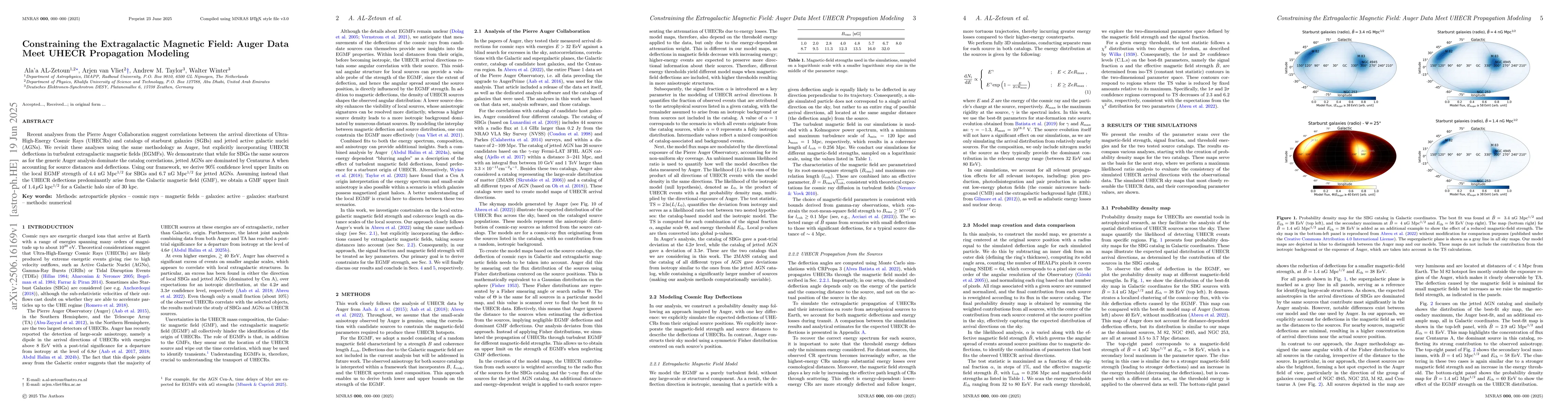 Recent analyses from the Pierre Auger Collaboration suggest correlations between the arrival directions of Ultra-High-Energy Cosmic Rays (UHECRs) and catalogs of starburst galaxies (SGBs) and jetted active galactic nuclei (AGNs). We revisit these analyses using the same methodology as \auger , but explicitly incorporating UHECR deflections in turbulent extragalactic magnetic fields (EGMFs). We demonstrate that while for SBGs the same sources as for the generic \auger\ analysis dominate the catalog correlations, jetted AGNs are dominated by Centaurus~A when accounting for source distances and deflections. Using our framework, we derive 90\% confidence level upper limits on the local EGMF strength of 4.4~nG~Mpc$^{1/2}$ for SBGs and 6.7~nG~Mpc$^{1/2}$ for jetted AGNs. Assuming instead that the UHECR deflections predominantly arise from the Galactic magnetic field (GMF), we obtain a GMF upper limit of $1.4 \, \mu$G~kpc$^{1/2}$ for a Galactic halo size of 30~kpc.