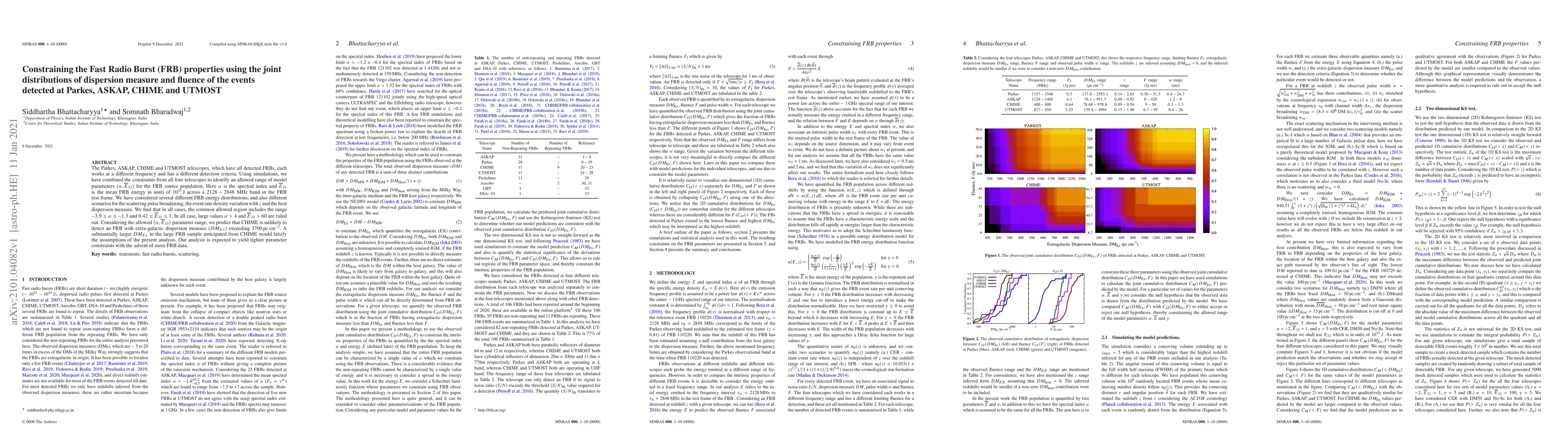 This paper combines data from multiple telescopes to constrain the properties of Fast Radio Bursts (FRBs), focusing on the spectral index $\alpha$ and mean energy $\E33$. The analysis finds that $\alpha$ ranges from -3.9 to -1.3 and $\E33$ from 0.42 to 1, ruling out larger values. Predictions suggest CHIME will likely not detect FRBs with extra-galactic dispersion measures exceeding 3700 pc cm$^{-3}$.