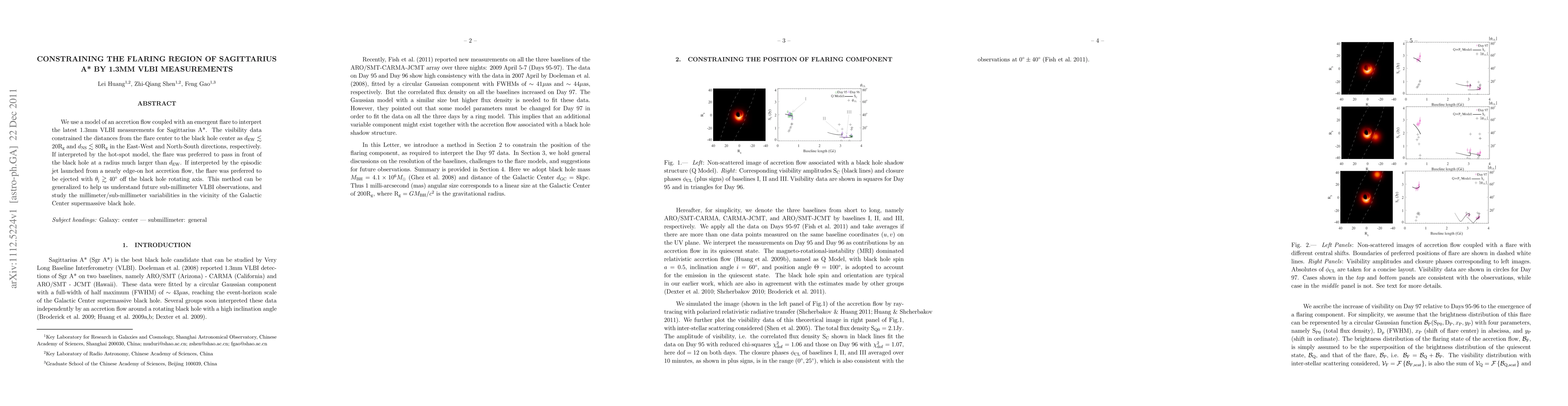 We use a model of an accretion flow coupled with an emergent flare to interpret the latest 1.3mm VLBI measurements for Sagittarius A*. The visibility data constrained the distances from the flare center to the black hole center as $d_{\rm EW}\lesssim20{\rm R_g}$ and $d_{\rm NS}\lesssim80{\rm R_g}$ in the East-West and North-South directions, respectively. If interpreted by the hot-spot model, the flare was preferred to pass in front of the black hole at a radius much larger than $d_{\rm EW}$. If interpreted by the episodic jet launched from a nearly edge-on hot accretion flow, the flare was preferred to be ejected with $\theta_{\rm j}\gtrsim40^\circ$ off the black hole rotating axis. This method can be generalized to help us understand future sub-millimeter VLBI observations, and study the millimeter/sub-millimeter variabilities in the vicinity of the Galactic Center supermassive black hole.