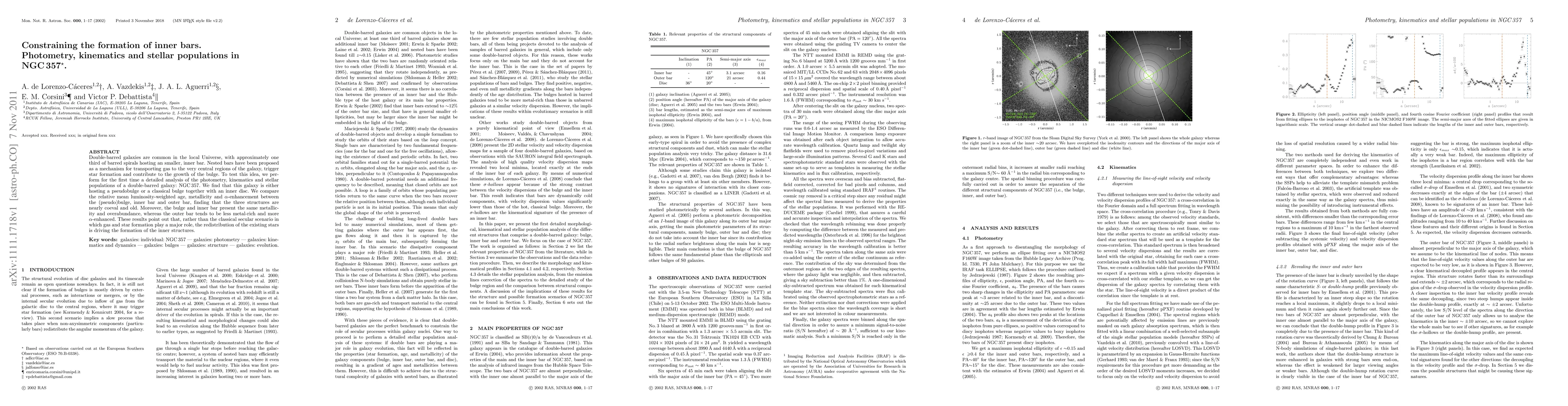 This paper investigates NGC 357, a double-barred galaxy, to understand the formation of inner bars. It finds that the galaxy's inner structures—a pseudobulge or classical bulge and an inner disc—are nearly coeval, suggesting star redistribution rather than gas-driven star formation drives their formation.