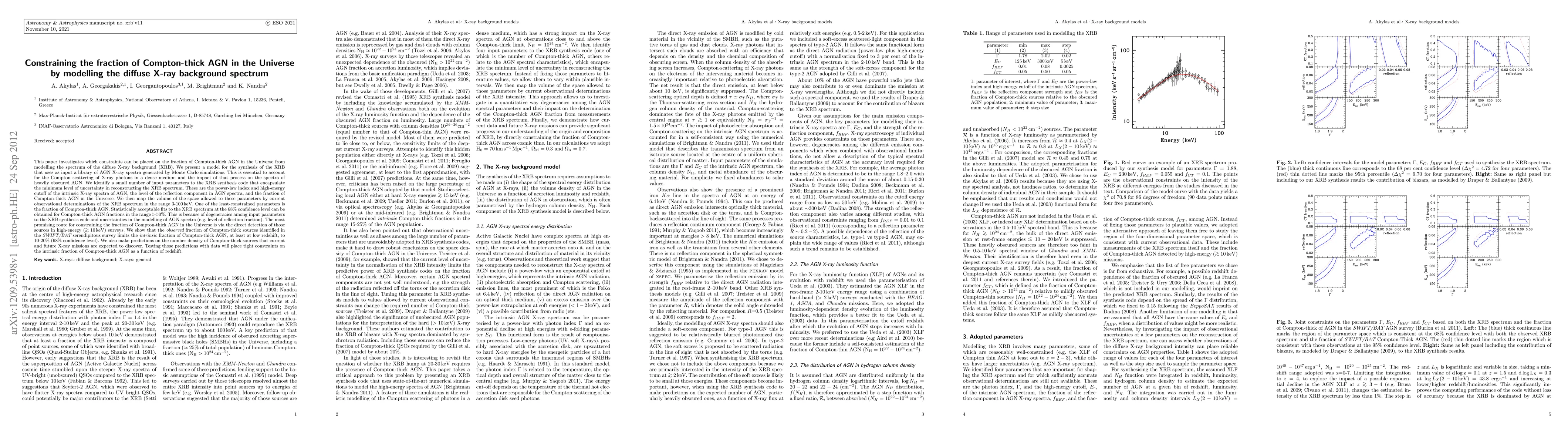 This paper investigates what constraints can be placed on the fraction of Compton-thick (CT) AGN in the Universe from the modeling of the spectrum of the diffuse X-ray background (XRB). We present a model for the synthesis of the XRB that uses as input a library of AGN X-ray spectra generated by the Monte Carlo simulations described by Brightman & Nandra. This is essential to account for the Compton scattering of X-ray photons in a dense medium and the impact of that process on the spectra of obscured AGN. We identify a small number of input parameters to the XRB synthesis code which encapsulate the minimum level of uncertainty in reconstructing the XRB spectrum. These are the power-law index and high energy cutoff of the intrinsic X-ray spectra of AGN, the level of the reflection component in AGN spectra and the fraction of CT AGN in the Universe. We then map the volume of the space allowed to these parameters by current observations of the XRB spectrum in the range 3-100 keV. One of the least constrained parameters is the fraction of CT AGN. Statistically acceptable fits to the XRB spectrum at the 68% confidence level can be obtained for CT fractions in the range 5-50%. This is because of degeneracies among input parameters to the XRB synthesis code and uncertainties in the modeling of AGN spectra (e.g. reflection). The most promising route for constraining the fraction of CT AGN in the Universe is via the direct detection of those sources in high energy (>10keV) surveys. It is shown that the observed fraction of CT sources identified in the SWIFT/BAT survey, limits the intrinsic fraction of CT AGN, at least at low redshift, to 10-20% (68% confidence level). We also make predictions on the number density of CT sources that current and future X-ray missions are expected to discover. Testing those predictions will constrain the intrinsic fraction of CT AGN as a function of redshift.