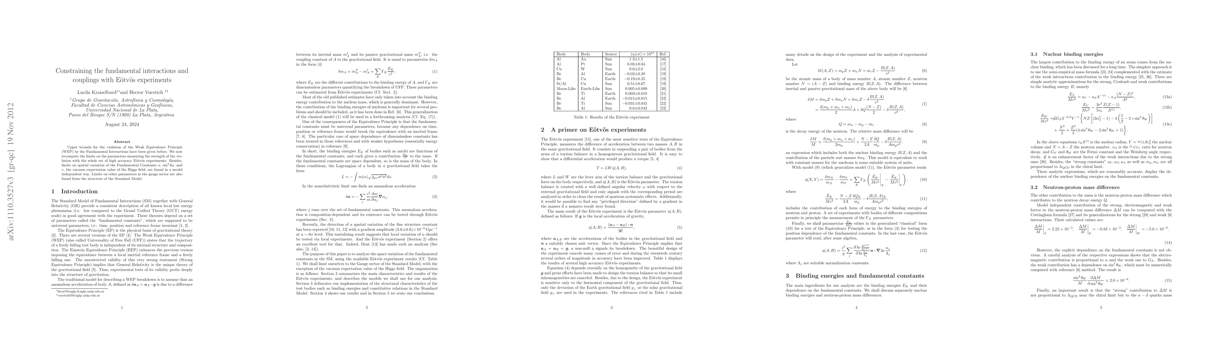 Upper bounds for the violation of the Weak Equivalence Principle (WEP) by the Fundamental Interactions have been given before. We now recompute the limits on the parameters measuring the strength of the violation with the whole set of high accuracy E\"{o}tv\"{o}s experiments. Besides, limits on spatial variation of the Fundamental Constants \alpha, Weinberg angle \theta, and v, the vacuum expectation value of the Higgs field, are found in a model independent way. Limits on other parameters in the gauge sector are also found from the strucutre of the Standard Model.