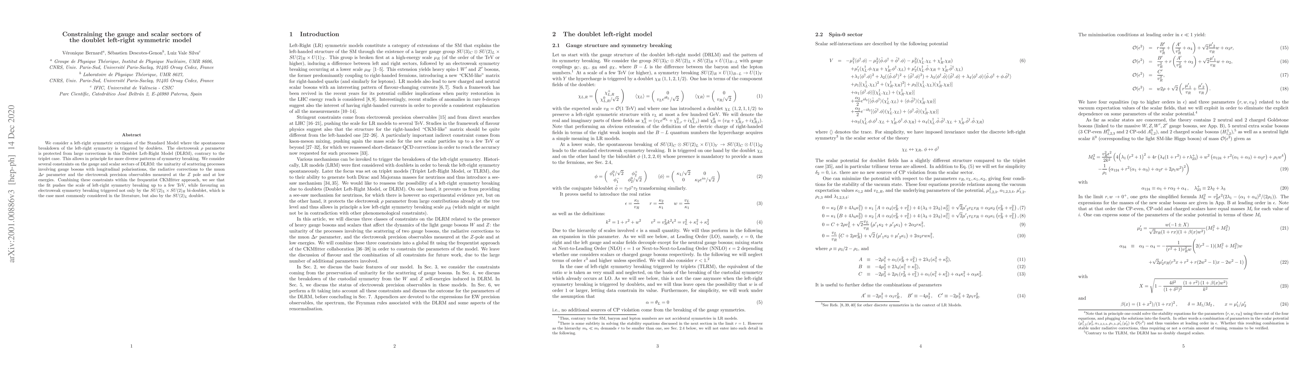 This paper examines a left-right symmetric extension of the Standard Model driven by doublets, protecting the $\rho$ parameter from large corrections. It constrains the gauge and scalar sectors using unitarity, radiative corrections, and electroweak precision data, finding that the symmetry breaking scale rises to a few TeV and suggests a dual symmetry breaking mechanism involving both bi-doublets and $SU(2)_L$ doublets.