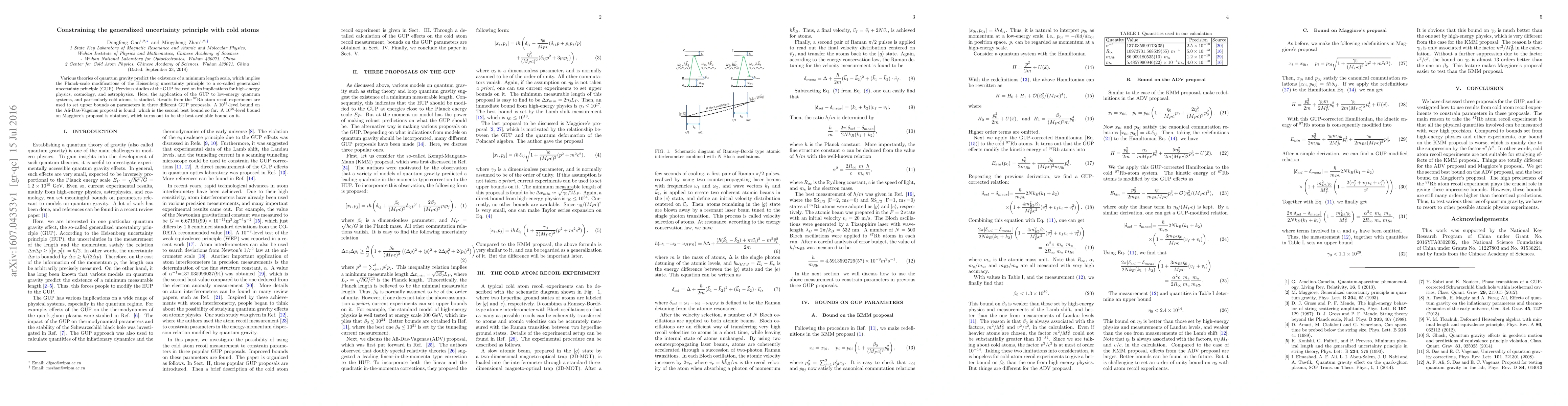 Researchers apply a generalized uncertainty principle to cold atoms, setting strong bounds on its parameters with results from an atom recoil experiment, providing new insights into low-energy quantum systems.