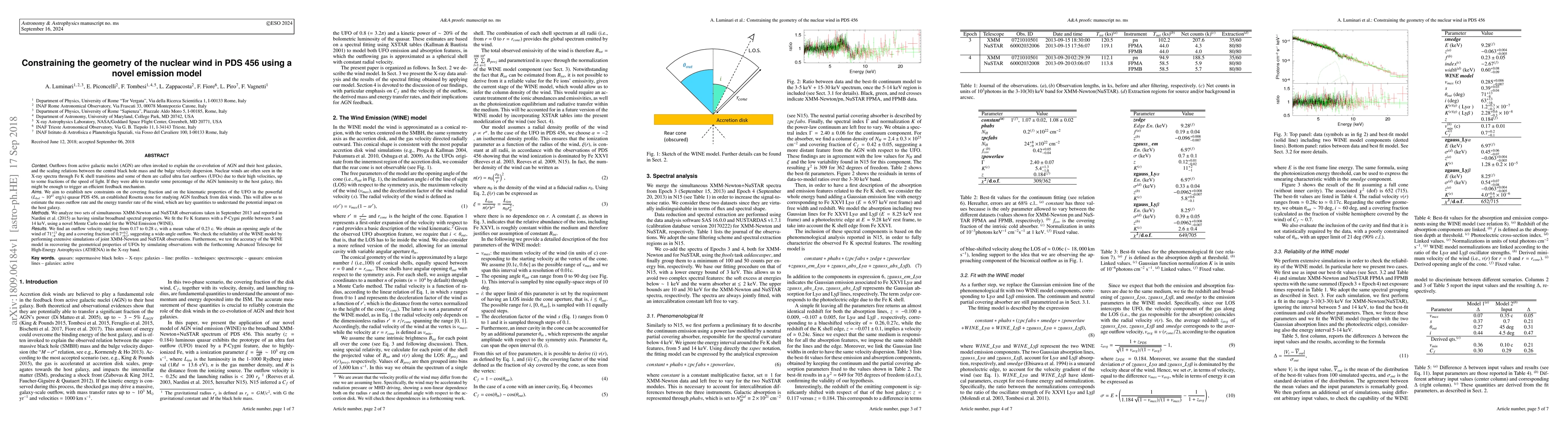 Outflows from active galactic nuclei (AGN) are often invoked to explain the co-evolution of AGN and their host galaxies, and the scaling relations between the central black hole mass and the bulge velocity dispersion. Nuclear winds are often seen in the X-ray spectra through Fe K shell transitions and some of them are called ultra fast outflows (UFOs) due to their high velocities, up to some fractions of the speed of light. If they were able to transfer some percentage of the AGN luminosity to the host galaxy, this might be enough to trigger an efficient feedback mechanism. We aim to establish new constraints on the covering fraction and on the kinematic properties of the UFO in the powerful (L(bol) ~ 10^(47) erg/s) quasar PDS 456, an established Rosetta stone for studying AGN feedback from disk winds. This will allow us to estimate the mass outflow rate and the energy transfer rate of the wind, which are key quantities to understand the potential impact on the host galaxy. We analyze two sets of simultaneous XMM-Newton and NuSTAR observations taken in September 2013 and reported in Nardini et al. (2015) as having similar broadband spectral properties. We fit the Fe K features with a P-Cygni profile between 5 and 14 keV, using a novel Monte Carlo model for the WINd Emission (WINE). We find an outflow velocity ranging from 0.17 to 0.28 c, with a mean value of 0.23 c. We obtain an opening angle of the wind of 71(+13,-8) deg and a covering fraction of 0.7(+0.2,-0.3), suggesting a wide-angle outflow. We check the reliability of the WINE model by performing extensive simulations of joint XMM-Newton and NuSTAR observations. Furthermore, we test the accuracy of the WINE model in recovering the geometrical properties of UFOs by simulating observations with the forthcoming X-ray observatory ATHENA.