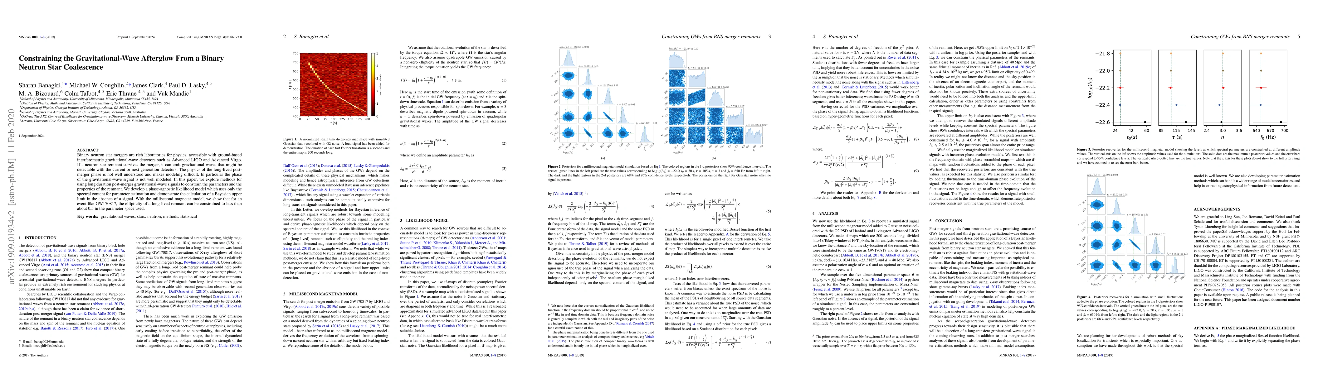 Researchers developed a new method to constrain the properties of neutron star remnants after binary mergers, using long-duration gravitational wave signals. They found that these signals can limit the remnant's ellipticity to less than 0.5 in some cases.