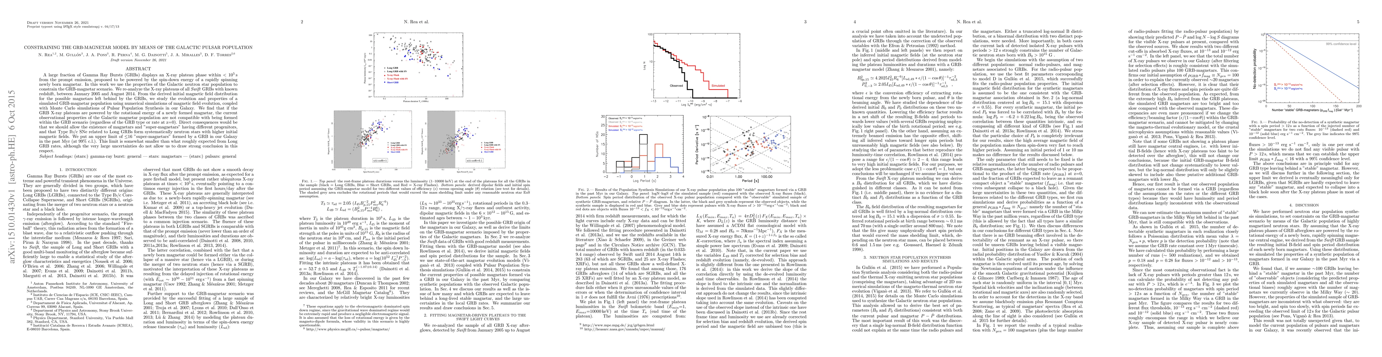 Research constrains the GRB-magnetar model using Galactic pulsar population data, suggesting that magnetars formed within Long GRBs may not exist as proposed, and instead may have different progenitors.