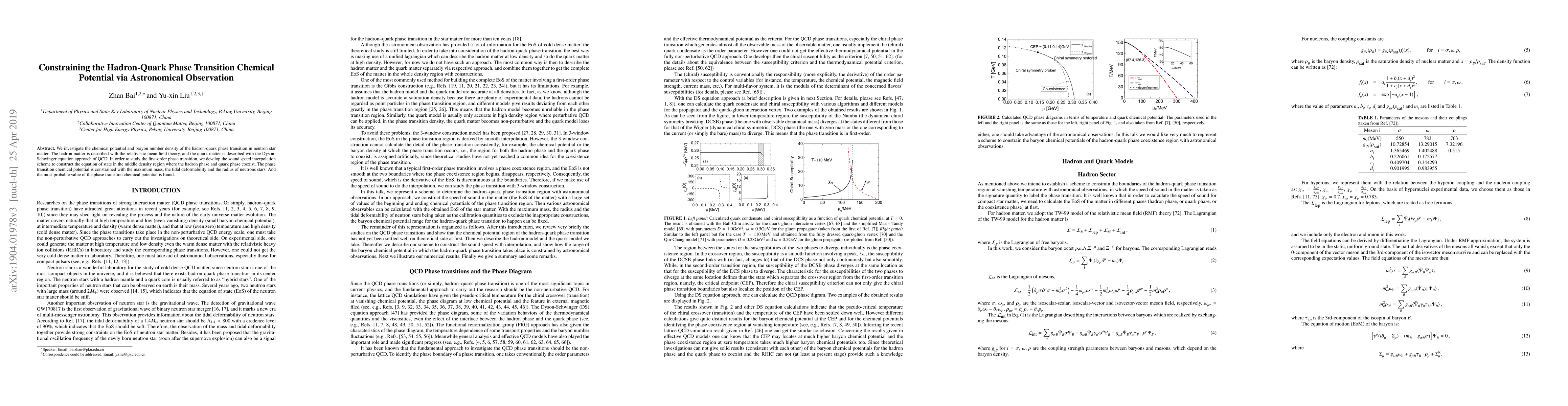 This paper investigates the chemical potential and baryon density of the hadron-quark phase transition in neutron star matter using relativistic mean field theory and QCD's Dyson-Schwinger equation. The study constrains the phase transition chemical potential through neutron star maximum mass, tidal deformability, and radius, finding the most probable value for this transition.