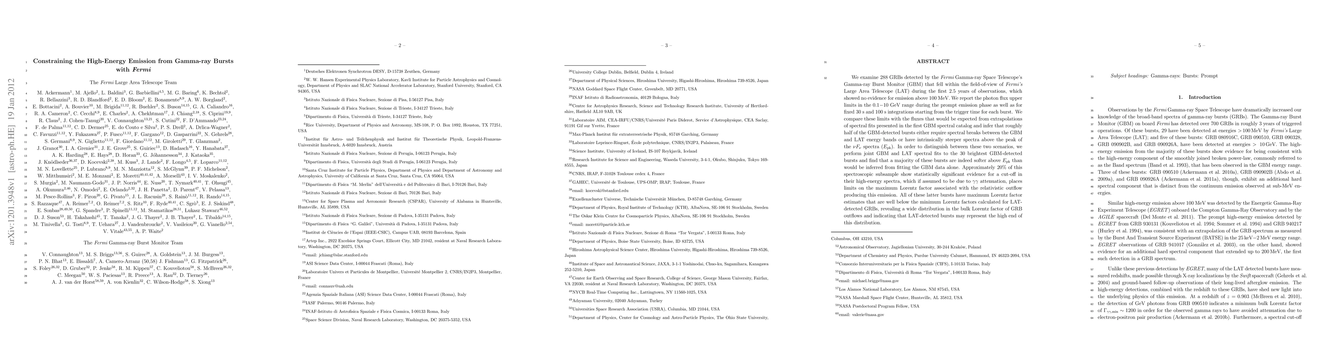This study analyzes 288 gamma-ray bursts (GRBs) detected by Fermi's GBM that were also within the LAT's field-of-view, finding no high-energy emission above 100 MeV. It suggests that many GRBs require spectral breaks or steeper spectra above their peak energy, with about 20% showing evidence of high-energy spectral cutoffs.