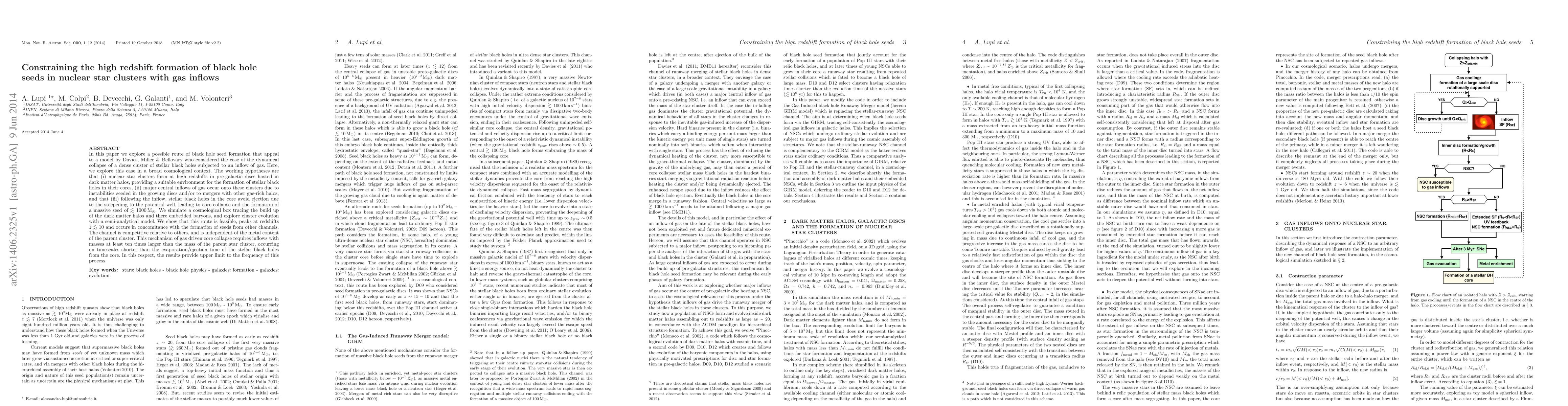 This paper investigates a model for high-redshift black hole seed formation in nuclear star clusters through gas inflows, showing that this mechanism is feasible and competitive with other formation channels, peaking at redshifts $z <~ 10$. The study finds that gas inflows must be significantly larger than the star cluster mass to enable this process.