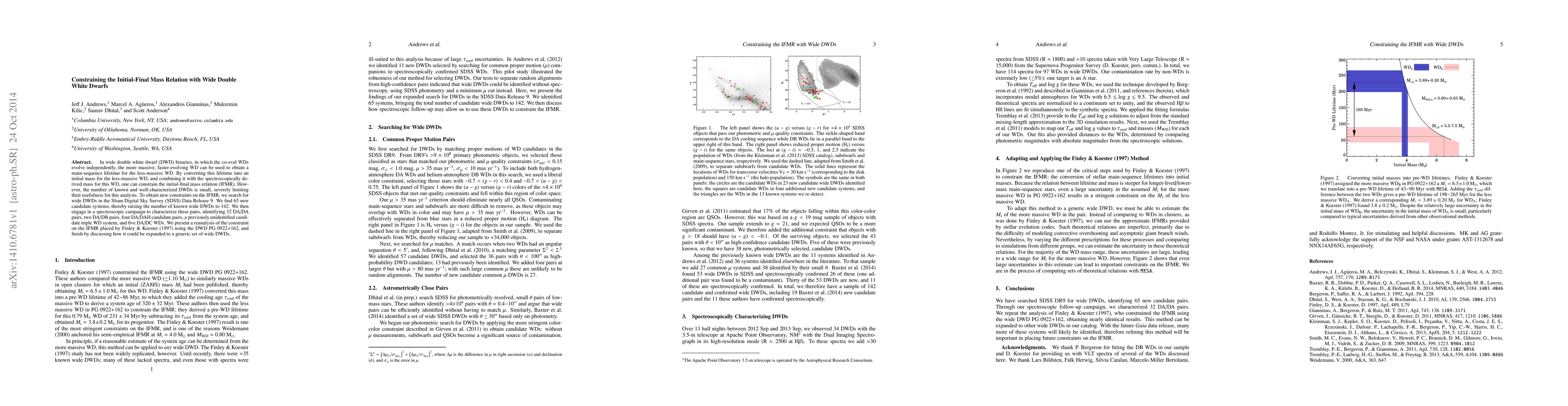 This paper identifies 65 new wide double white dwarf binaries in the Sloan Digital Sky Survey, expanding the known population to 142. By analyzing these systems, researchers aim to constrain the initial-final mass relation, using the more massive white dwarf to estimate the initial mass of the less massive one, thereby improving understanding of stellar evolution.