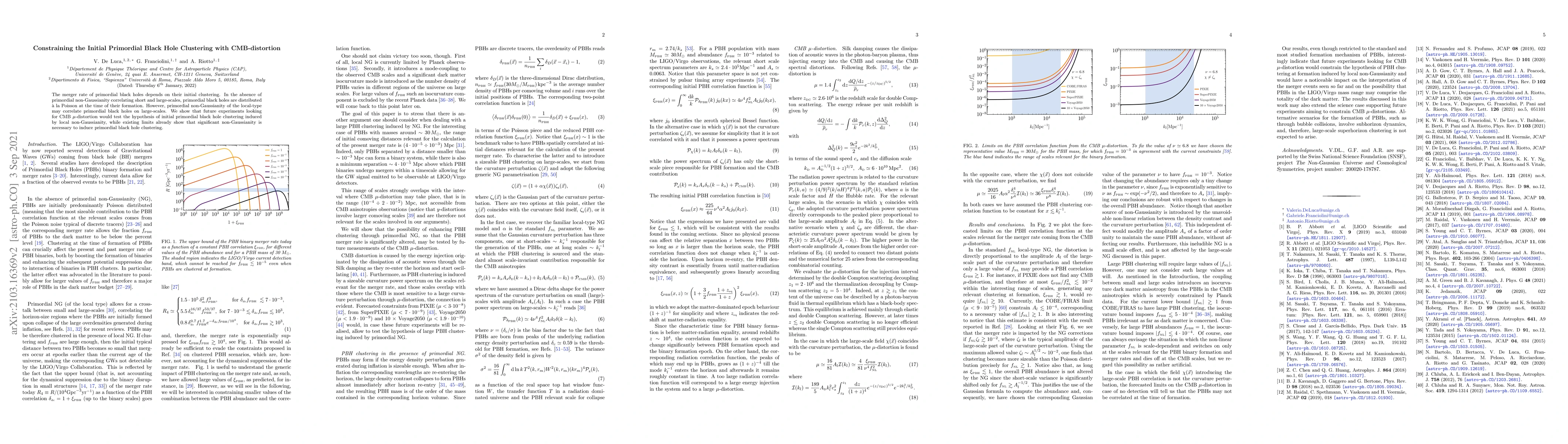 This paper investigates the clustering of primordial black holes and its implications for the merger rate, using CMB $\mu$-distortion as a probe. It concludes that future CMB experiments can test the hypothesis of initial clustering due to local non-Gaussianity, while current constraints suggest significant non-Gaussianity is required for such clustering.