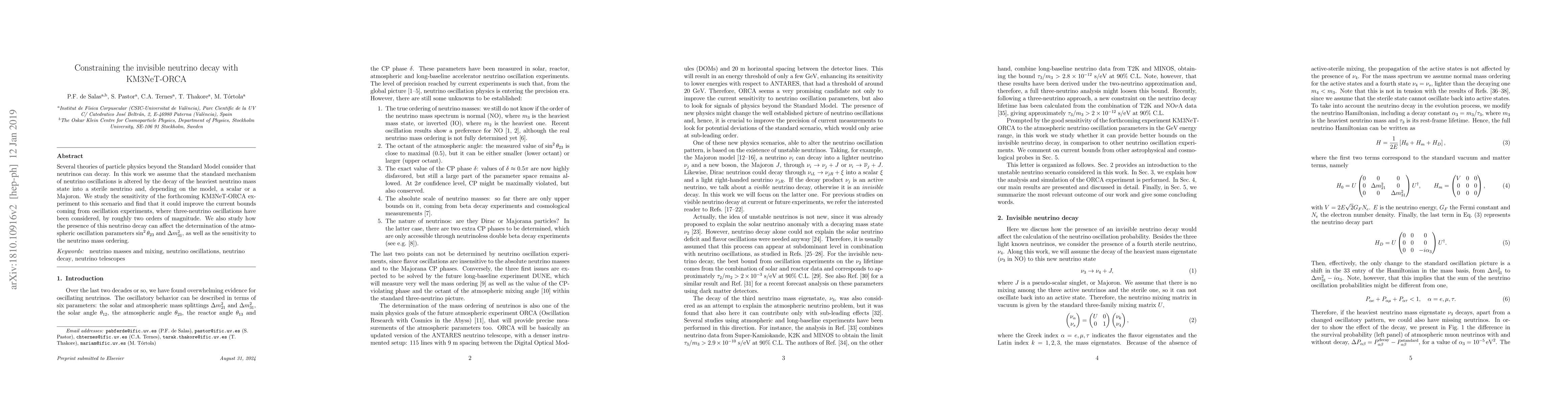 This paper investigates the potential of the KM3NeT-ORCA experiment to constrain neutrino decay beyond the Standard Model, finding it could enhance current oscillation experiment bounds by two orders of magnitude. It also examines the impact of neutrino decay on determining atmospheric oscillation parameters and the sensitivity to neutrino mass ordering.