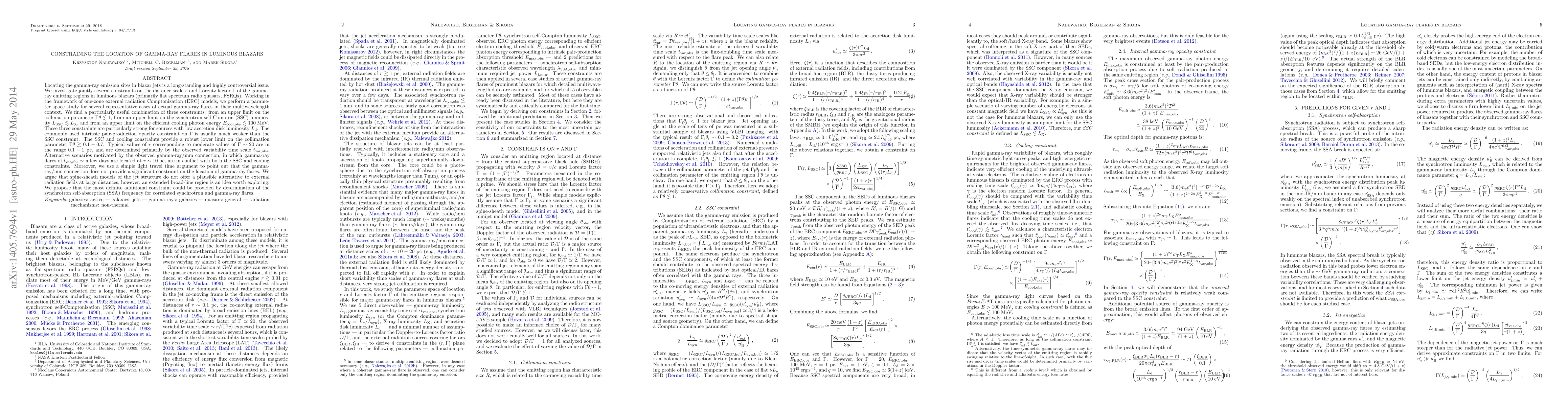 The paper presents a comprehensive analysis of constraints on the location of gamma-ray flares in luminous blazars using ERC models, providing a robust lower limit on the collimation parameter and r values for given Lorentz factors.