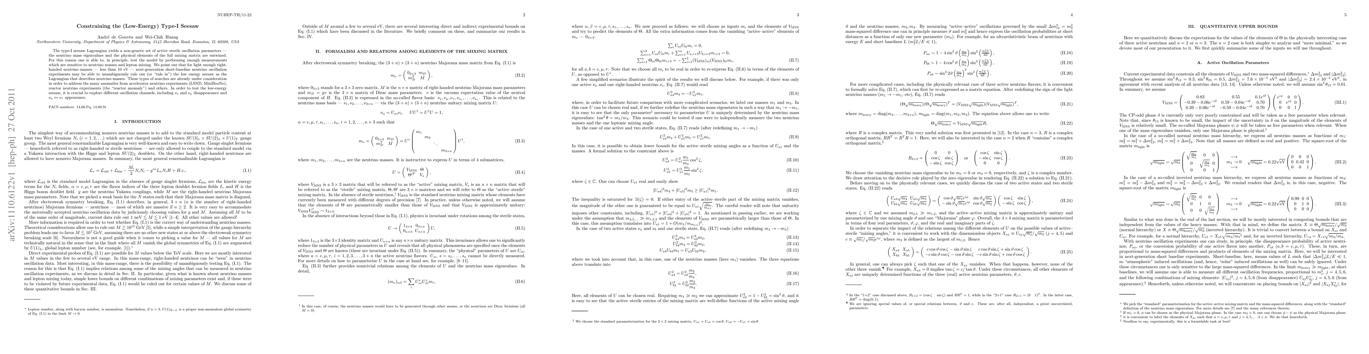 The type-I seesaw Lagrangian yields a non-generic set of active-sterile oscillation parameters - the neutrino mass eigenvalues and the physical elements of the full mixing matrix are entwined. For this reason one is able to, in principle, test the model by performing enough measurements which are sensitive to neutrino masses and lepton mixing. We point out that for light enough right-handed neutrino masses - less than 10 eV - next-generation short-baseline neutrino oscillation experiments may be able to unambiguously rule out (or "rule in") the low energy seesaw as the Lagrangian that describes neutrino masses. These types of searches are already under consideration in order to address the many anomalies from accelerator neutrino experiments (LSND, MiniBooNe), reactor neutrino experiments (the "reactor anomaly") and others. In order to test the low-energy seesaw, it is crucial to explore different oscillation channels, including nu_e and nu_mu disappearance and nu_mu to nu_tau appearance.