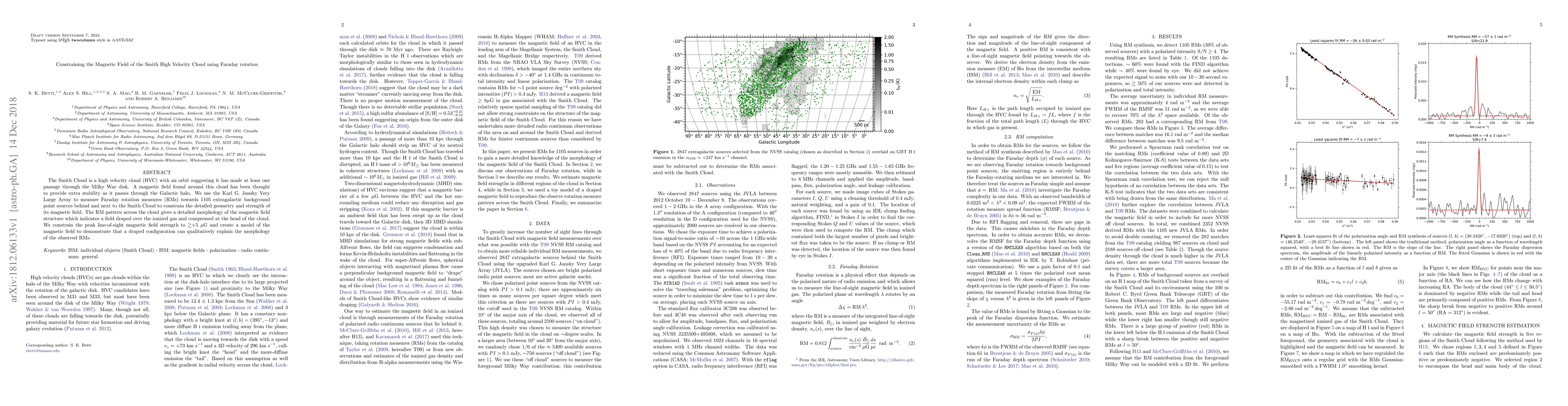 This paper uses Faraday rotation measures from the Karl G. Jansky Very Large Array to analyze the magnetic field of the Smith High Velocity Cloud, revealing a draped magnetic field structure compressed at the cloud's leading edge. The study constrains the peak line-of-sight magnetic field strength to be greater than +5 uG.