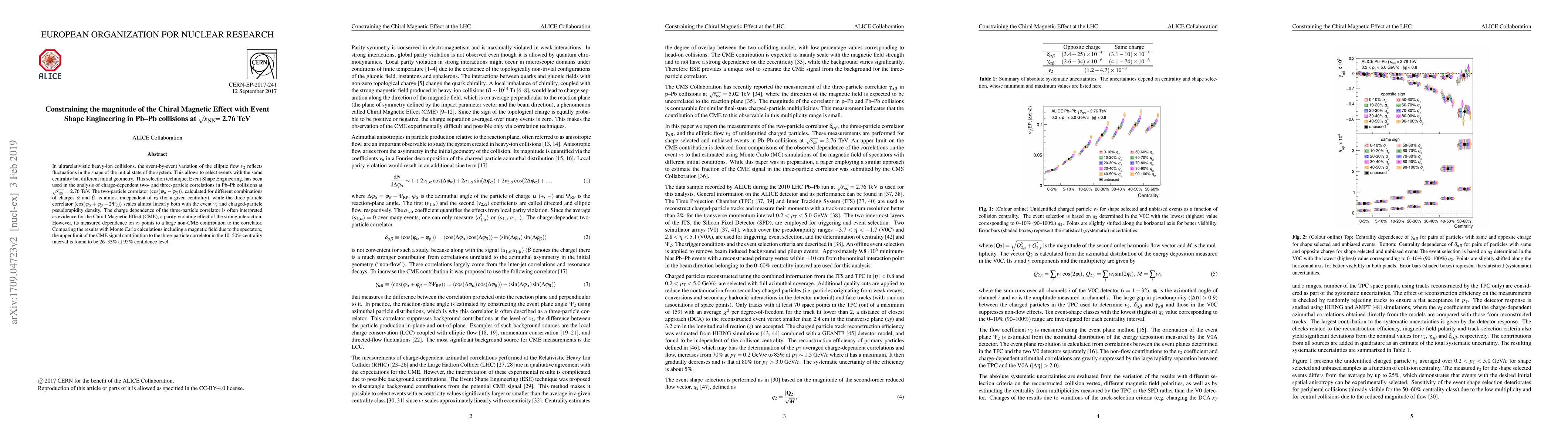 Researchers used Event Shape Engineering to analyze the Chiral Magnetic Effect in Pb-Pb collisions, finding that its signal contribution is likely small compared to other effects, with an upper limit of 26-33% at 95% confidence level.