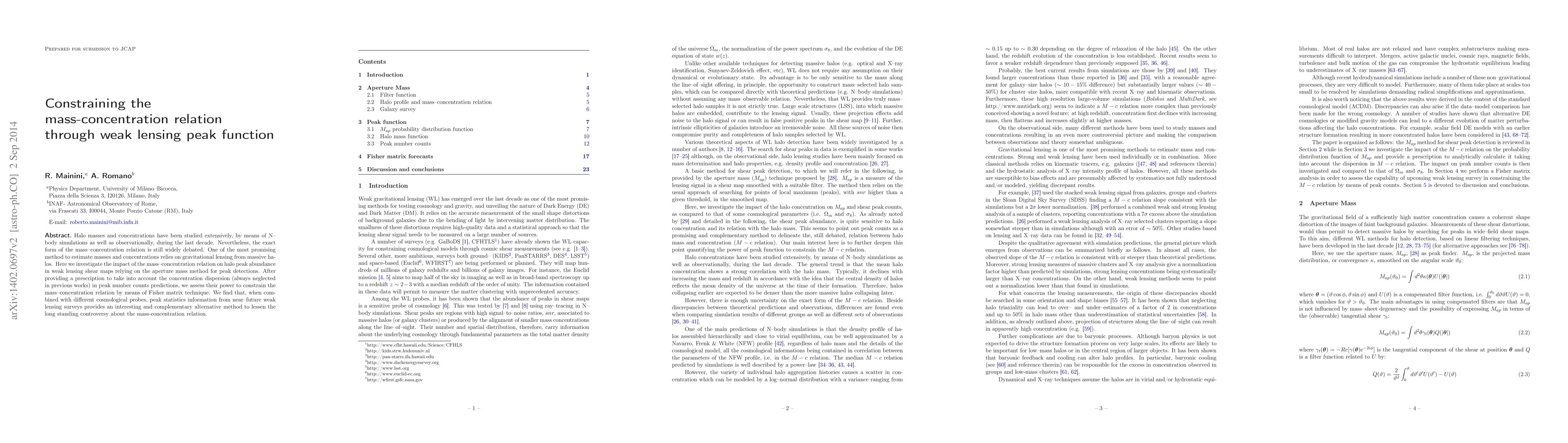 This paper explores the mass-concentration relation in dark matter halos using weak lensing peak statistics, incorporating concentration dispersion for the first time. It concludes that weak lensing peak data from future surveys, combined with other cosmological data, can provide a valuable method to constrain the mass-concentration relation, offering a new perspective to resolve ongoing debates.