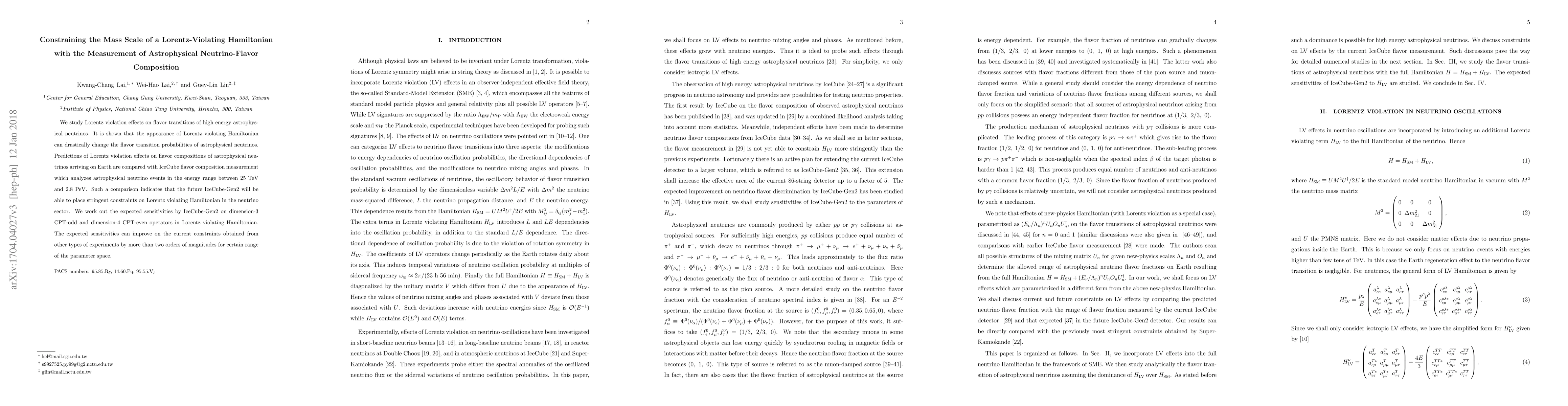 This paper investigates how Lorentz violation in a Hamiltonian affects the flavor transitions of high-energy astrophysical neutrinos, comparing these predictions with IceCube's measurements. Future IceCube-Gen2 is projected to significantly improve constraints on Lorentz violation parameters by over two orders of magnitude compared to current limits.