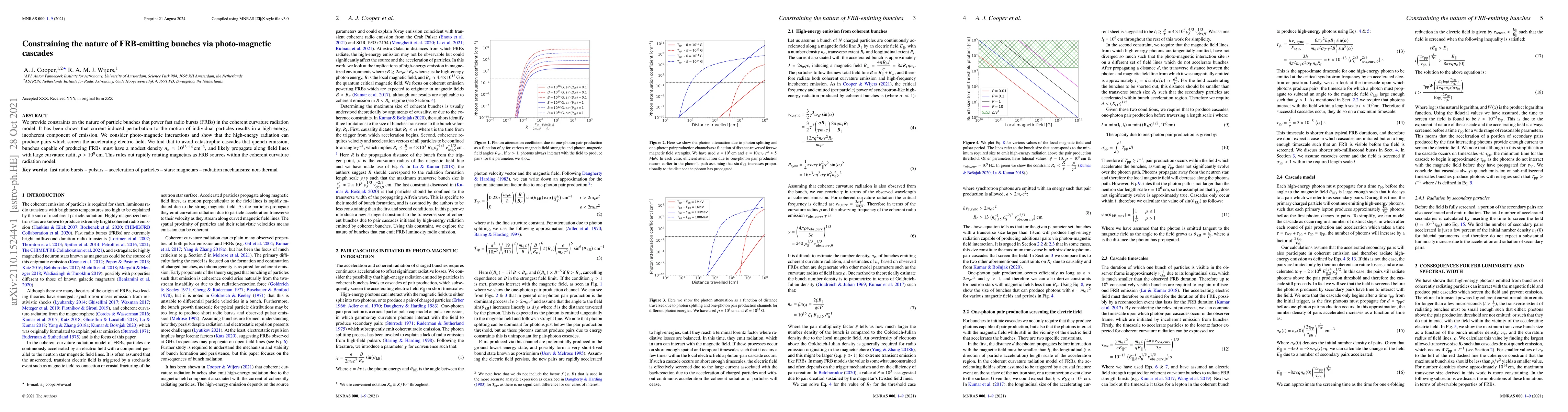 We provide constraints on the nature of particle bunches that power fast radio bursts (FRBs) in the coherent curvature radiation model. It has been shown that current-induced perturbation to the motion of individual particles results in a high-energy, incoherent component of emission. We consider photo-magnetic interactions and show that the high-energy radiation can produce pairs which screen the accelerating electric field. We find that to avoid catastrophic cascades that quench emission, bunches capable of producing FRBs must have a modest density $n_e \approx 10^{13-14}\, {\rm cm^{-3}}$, and likely propagate along field lines with large curvature radii, $\rho > 10^8 \, {\rm cm}$. This rules out rapidly rotating magnetars as FRB sources within the coherent curvature radiation model.