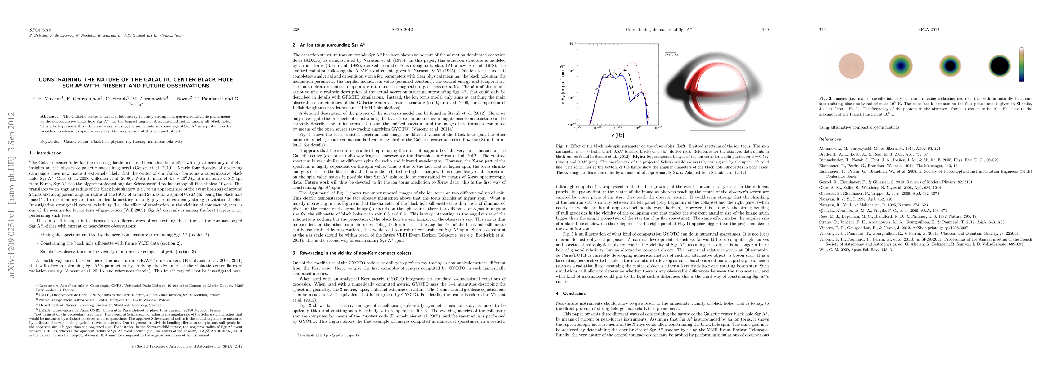 This paper explores methods to constrain the nature of the supermassive black hole Sgr A* at the Galactic center using its immediate surroundings, aiming to determine its spin and test its fundamental properties through strong-field general relativistic phenomena. Future observations are highlighted as crucial for these investigations.