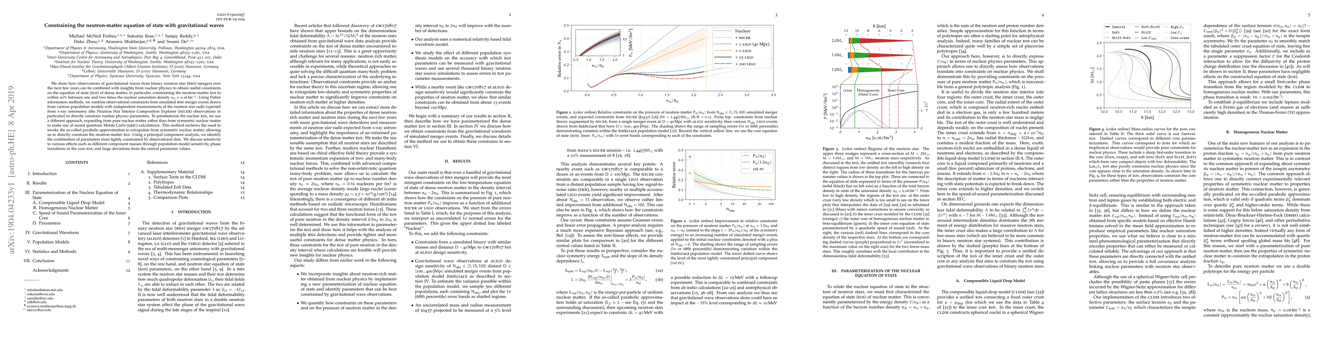 We show how observations of gravitational waves from binary neutron star (BNS) mergers over the next few years can be combined with insights from nuclear physics to obtain useful constraints on the equation of state (EoS) of dense matter, in particular, constraining the neutron-matter EoS to within 20% between one and two times the nuclear saturation density $n_0\approx 0.16\ {\text{fm}^{-3}}$. Using Fisher information methods, we combine observational constraints from simulated BNS merger events drawn from various population models with independent measurements of the neutron star radii expected from x-ray astronomy (the Neutron Star Interior Composition Explorer (NICER) observations in particular) to directly constrain nuclear physics parameters. To parameterize the nuclear EoS, we use a different approach, expanding from pure nuclear matter rather than from symmetric nuclear matter to make use of recent quantum Monte Carlo (QMC) calculations. This method eschews the need to invoke the so-called parabolic approximation to extrapolate from symmetric nuclear matter, allowing us to directly constrain the neutron-matter EoS. Using a principal component analysis, we identify the combination of parameters most tightly constrained by observational data. We discuss sensitivity to various effects such as different component masses through population-model sensitivity, phase transitions in the core EoS, and large deviations from the central parameter values.