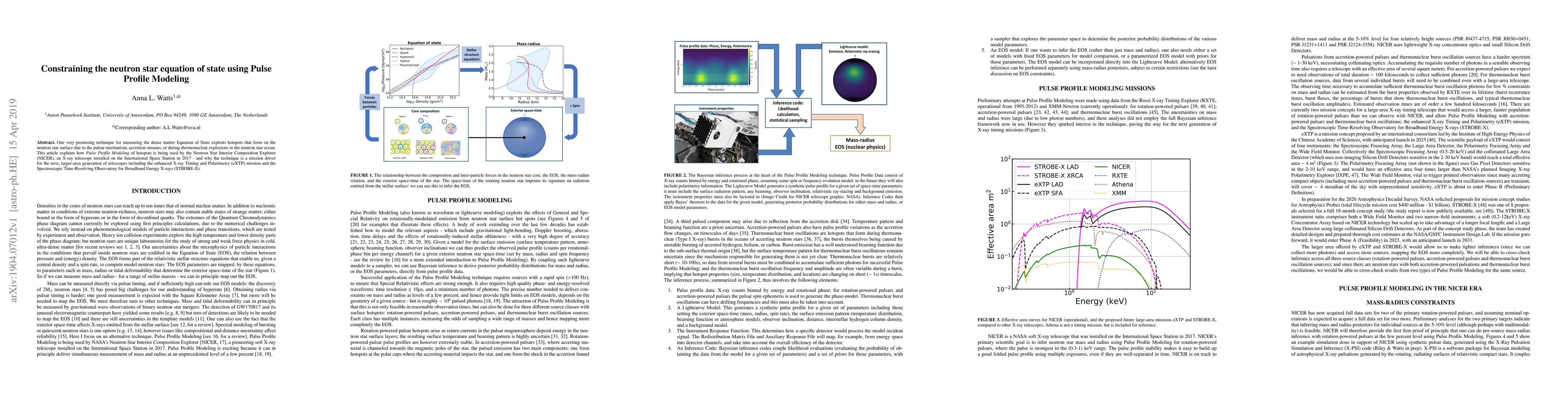 Researchers use Pulse Profile Modeling to study neutron star hotspots, aiming to constrain the equation of state of these dense objects. This technique is being used by NICER and will inform future missions like eXTP and STROBE-X.