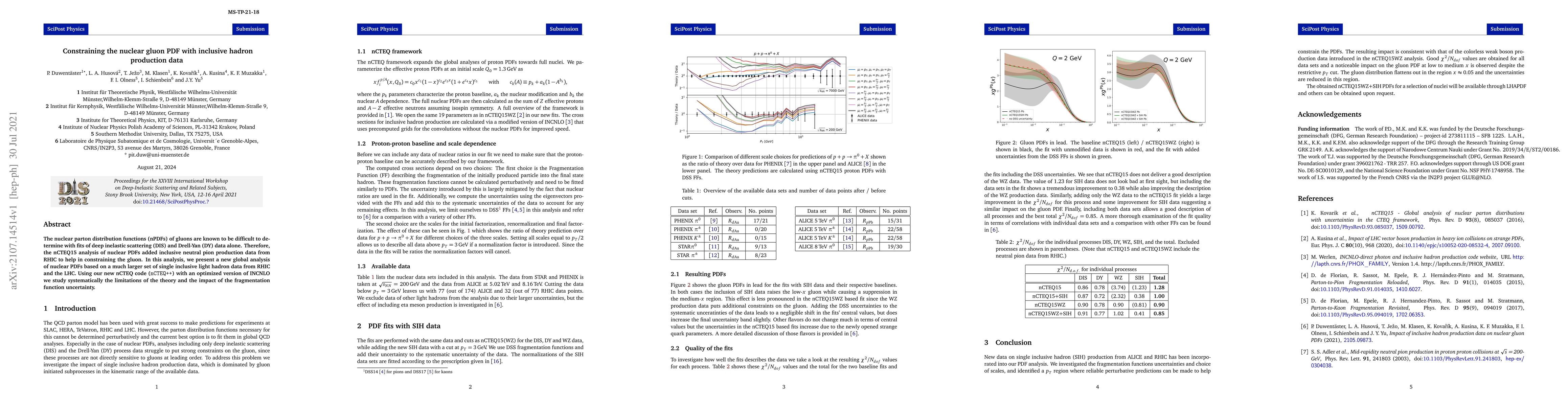 This work extends the nCTEQ15 analysis by incorporating a larger set of inclusive light hadron production data from RHIC and the LHC, providing a more robust constraint on nuclear gluon PDFs.