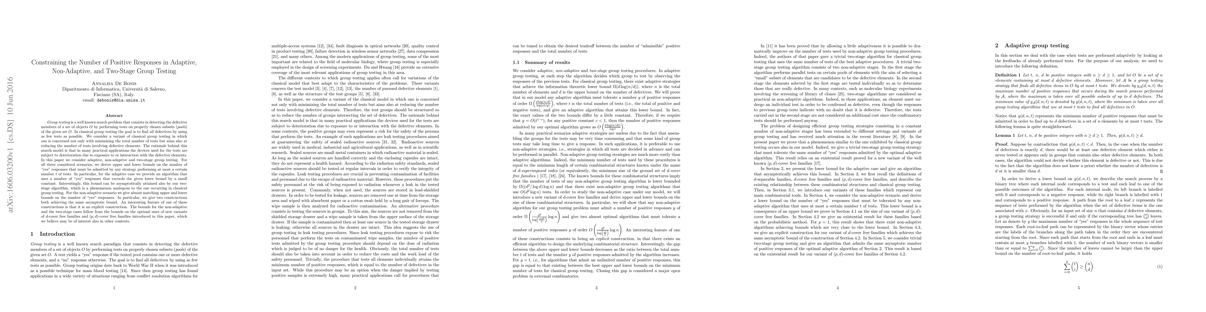 This paper explores adaptive, non-adaptive, and two-stage group testing strategies to minimize the number of tests while reducing the number of positive responses involving defective elements. It provides upper and lower bounds for the number of "yes" responses in each scenario and introduces new variants of d-cover free families to support these bounds.