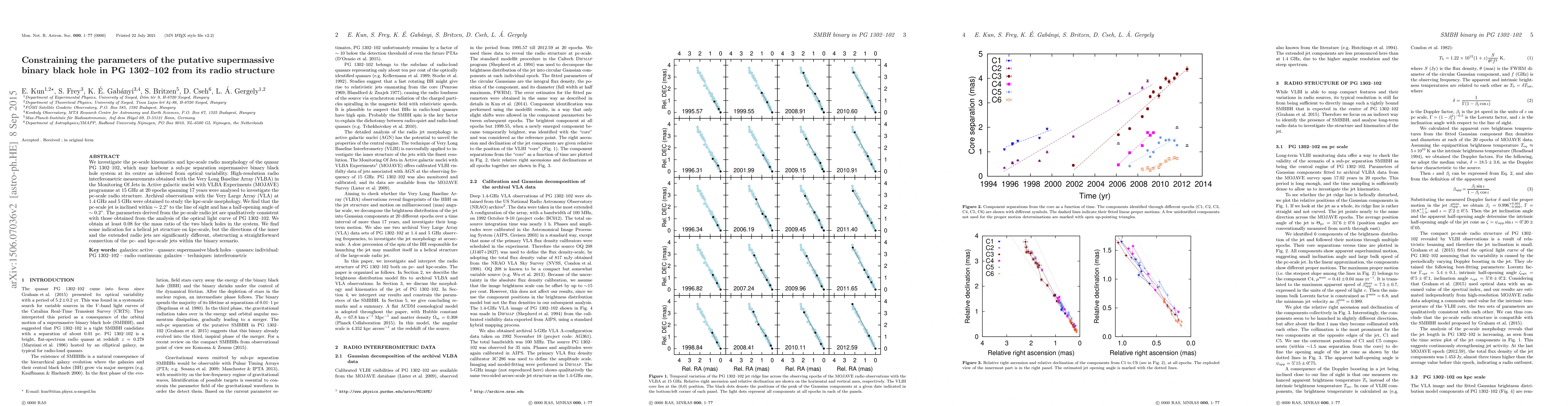 This study uses high-resolution radio interferometric data to analyze the pc-scale jet structure and kpc-scale radio morphology of quasar PG 1302-102, suggesting it may host a supermassive binary black hole system. The analysis indicates a mass ratio of at least 0.08 for the binary black holes, but the differing directions of inner and extended jets complicate a direct connection between pc-scale and kpc-scale jets.