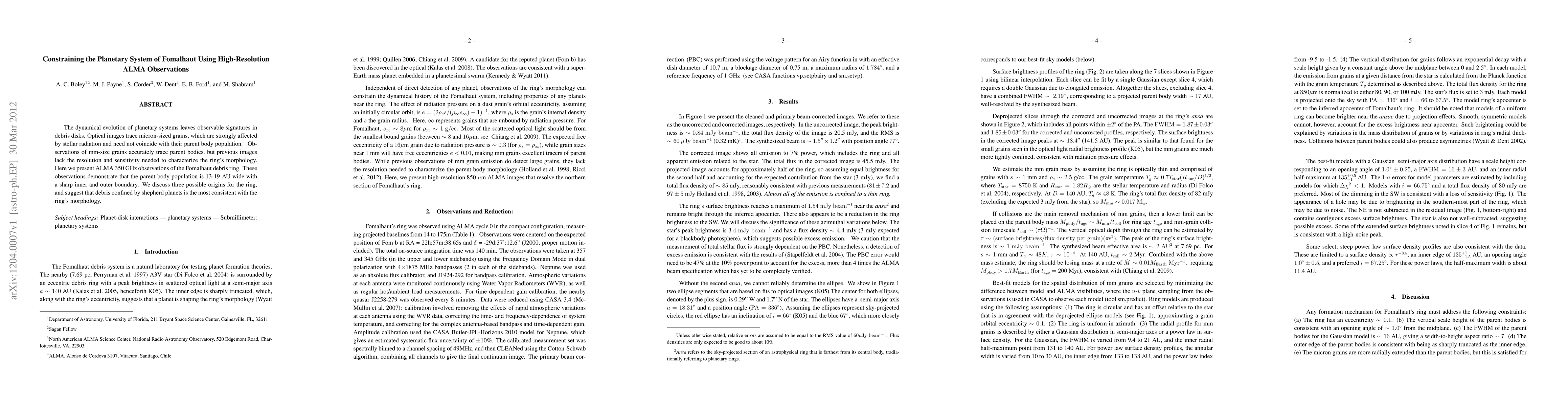 This study uses high-resolution ALMA observations to constrain the planetary system of Fomalhaut, revealing a debris ring with a 13-19 AU wide parent body population and sharp boundaries. The findings suggest that shepherd planets may be responsible for the ring's morphology, providing new insights into the dynamical evolution of planetary systems.