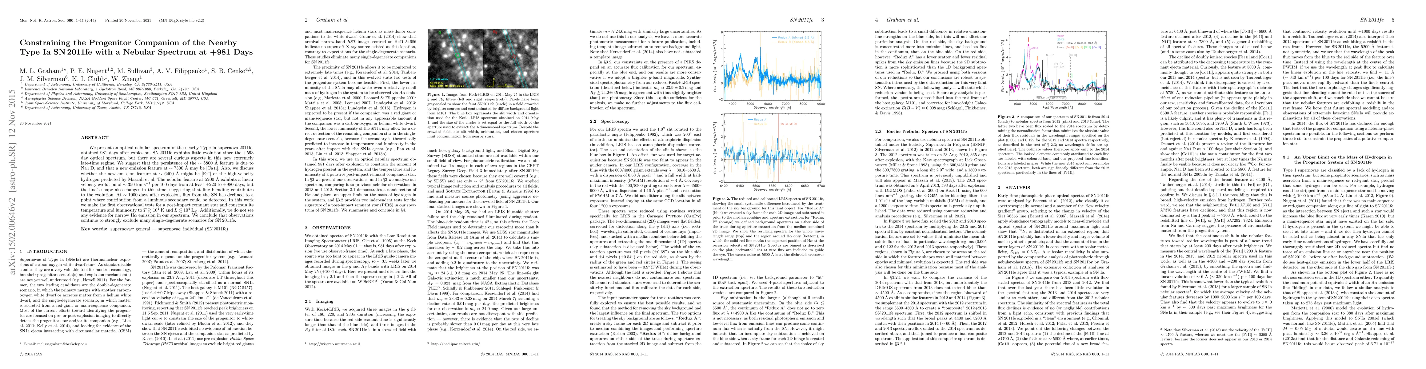 Researchers analyzed a Type Ia supernova's late-time nebular spectrum to constrain the progenitor companion's properties, ruling out single-degenerate scenarios for the event.