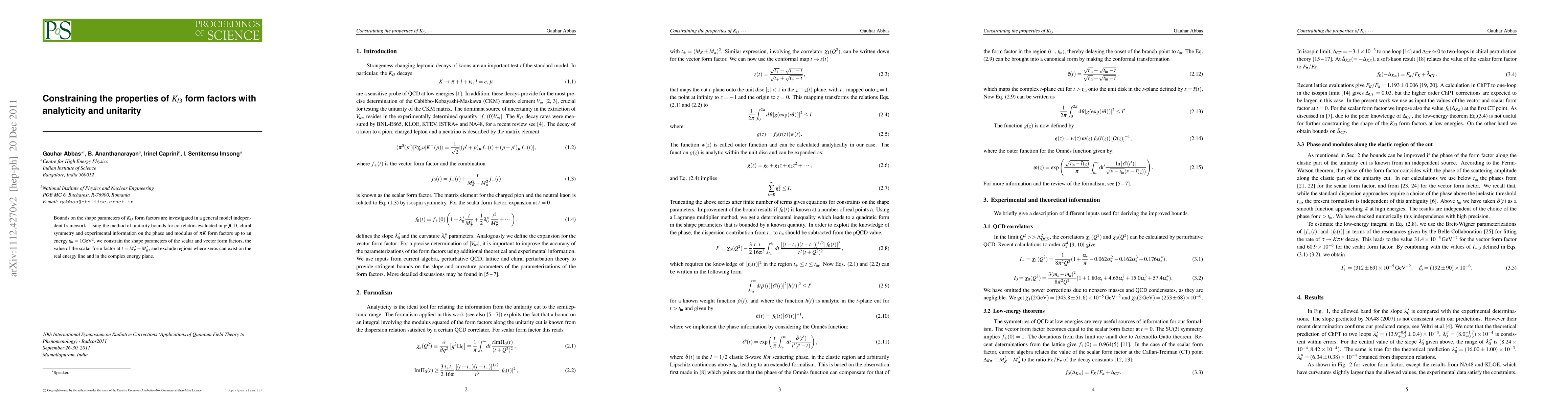 This paper investigates the bounds on K_{l3} form factors using unitarity and analyticity, constraining their shape parameters and scalar form factor value through pQCD, chiral symmetry, and experimental data. It excludes regions where zeros of the form factors could exist in real and complex energy planes.