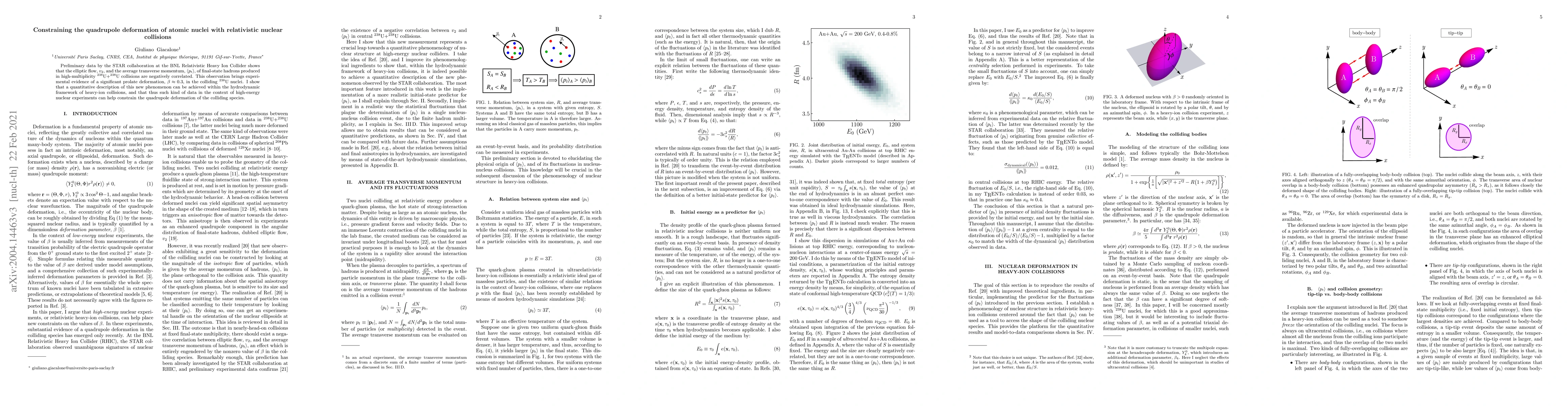 The STAR collaboration's preliminary data from relativistic heavy-ion collisions at BNL reveals a negative correlation between elliptic flow and average transverse momentum in $^{238}$U+$^{238}$U collisions, indicating a significant prolate deformation ($\beta \approx 0.3$) in the nuclei. This phenomenon can be quantitatively described within the hydrodynamic framework, suggesting that high-energy nuclear experiments can constrain the quadrupole deformation of atomic nuclei.